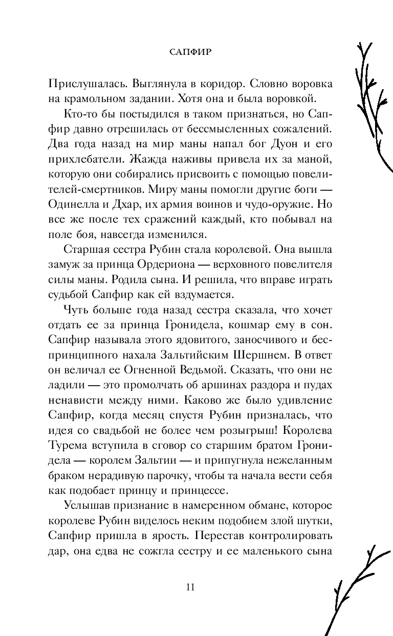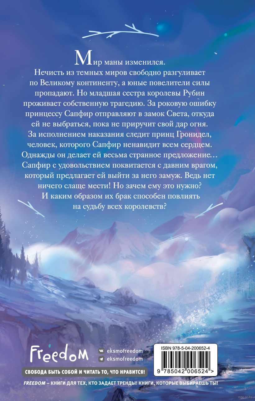 Мир маны изменился. Нечисть из темных миров свободно разгуливает по Великому континенту, а юные повелители силы пропадают. Но младшая сестра королевы Рубин проживает собственную трагедию. За роковую ошибку принцессу Сапфир отправляют в замок Света, откуда ей не выбраться, пока не приручит свой дар огня. За исполнением наказания следит принц Гронидел, человек, которого Сапфир ненавидит всем сердцем. Однажды он делает ей весьма странное предложение... Сапфир с удовольствием поквитается с давним врагом, который предлагает ей выйти за него замуж. Ведь нет ничего слаще мести! Но зачем ему это нужно? И каким образом их брак способен повлиять на судьбу всех королевств?
