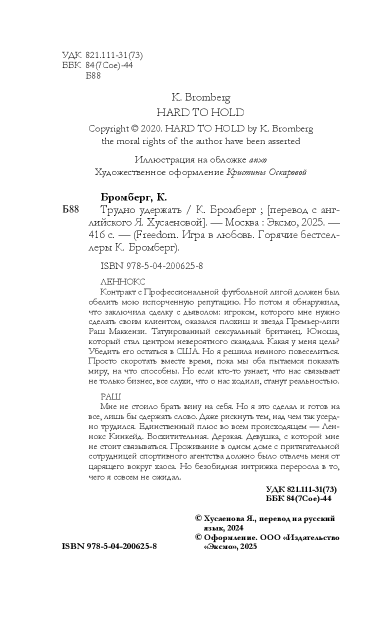 | Название в оригинале | Hard To Hold (Play Hard #2) By K. Bromberg |