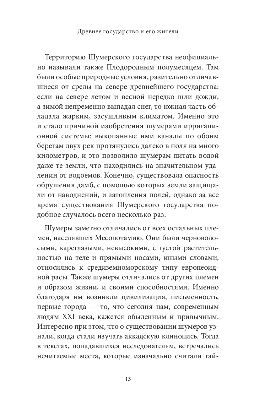 Эта книга приглашает приоткрыть тысячелетнюю завесу тайны над жизнью и верованиями легендарных шумеров, живших, как все мы помним со школы, в "колыбели цивилизации" – между реками Тигром и Евфратом. Вы узнаете, что представляла собой цивилизация жителей Месопотамии, разберетесь, как связаны Шумер, Вавилония, Аккад и Ассирия, познакомитесь с пантеоном и бестиарием шумерской мифологии и одним из древнейших литературных произведений человечества – "Эпосом о Гильгамеше".