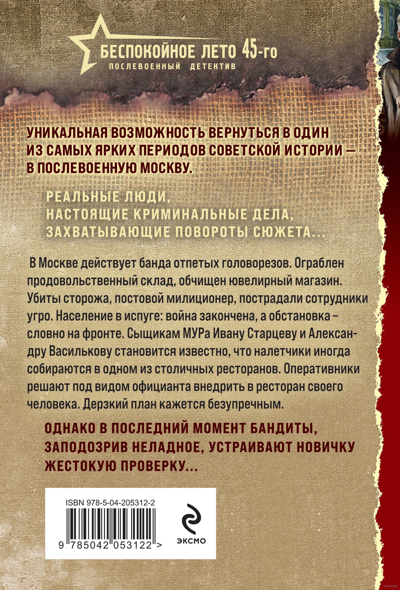 В Москве действует банда отпетых головорезов. Ограблен продовольственный склад, обчищен ювелирный магазин. Убиты сторожа, постовой милиционер, пострадали сотрудники угро. Население в испуге: война закончена, а обстановка – словно на фронте. Сыщикам МУРа Ивану Старцеву и Александру Василькову становится известно, что налетчики иногда собираются в одном из столичных ресторанов. Оперативники решают под видом официанта внедрить в ресторан своего человека. Дерзкий план кажется безупречным. Однако в последний момент бандиты, заподозрив неладное, устраивают новичку жестокую проверку...