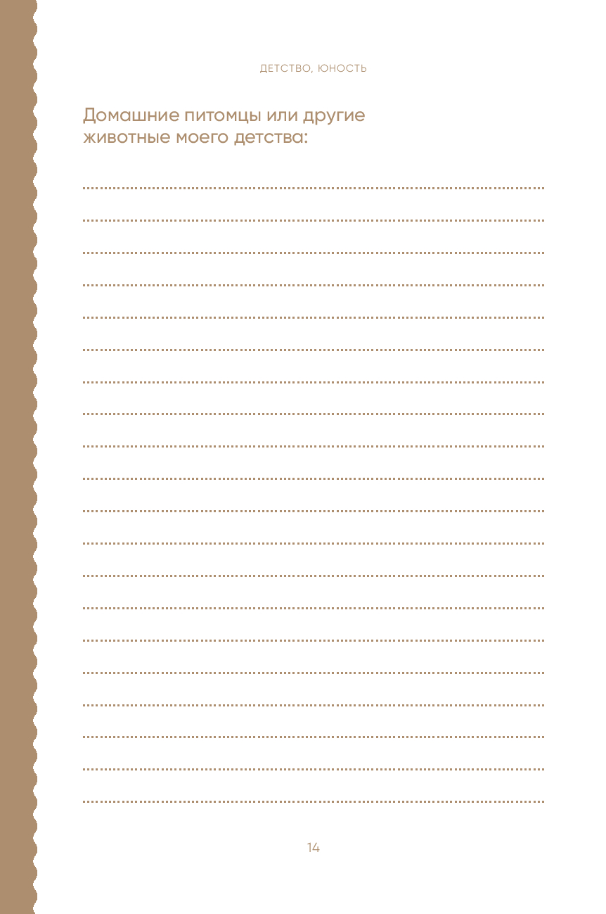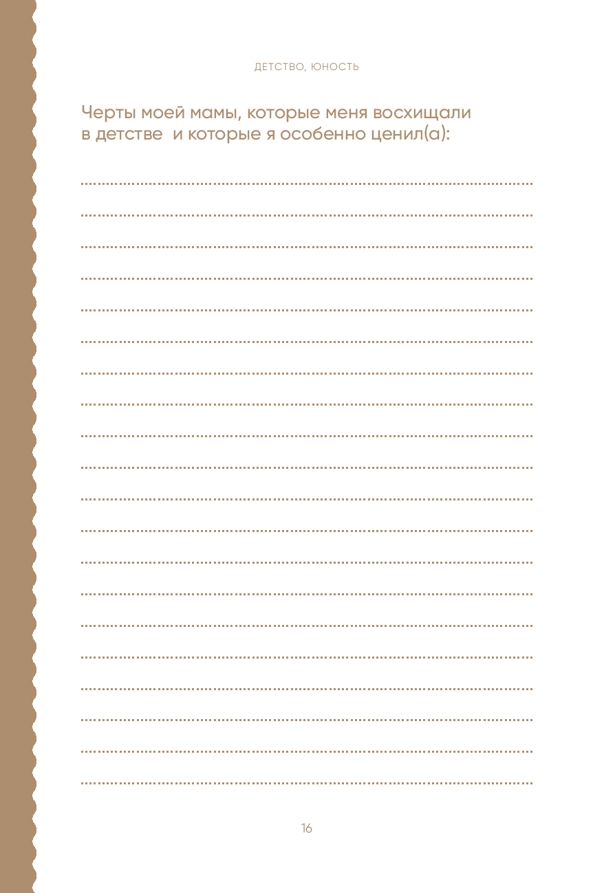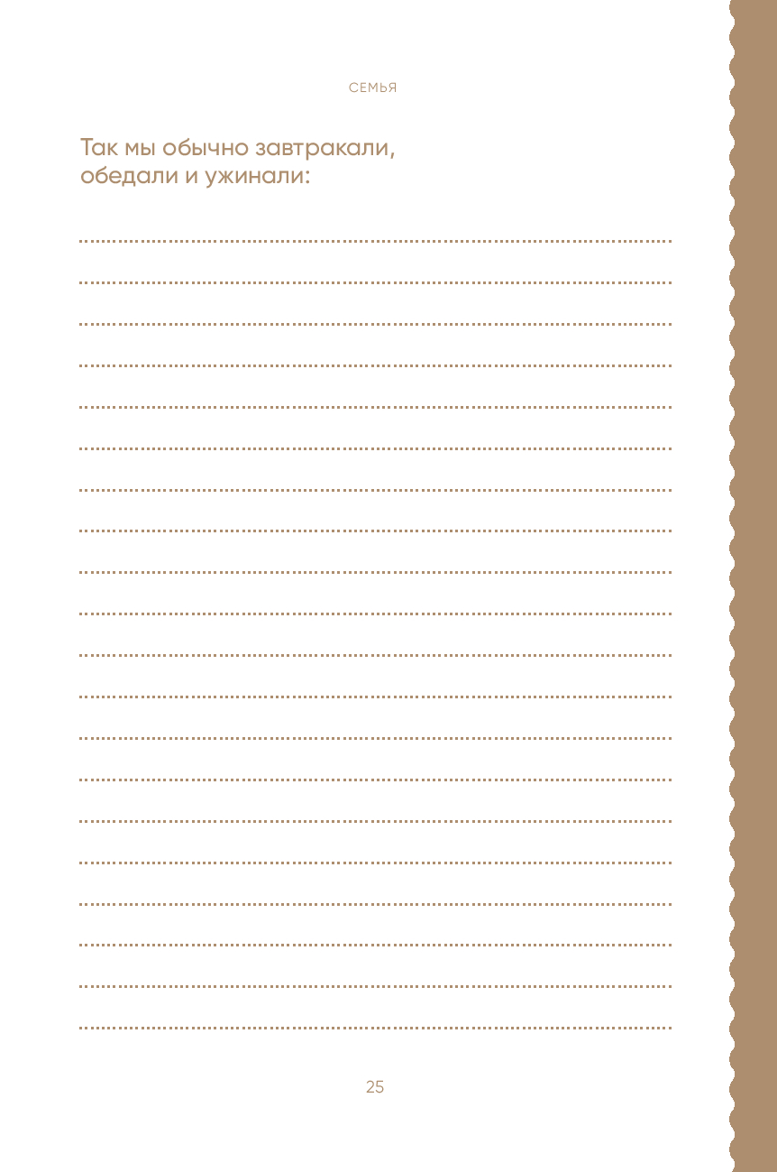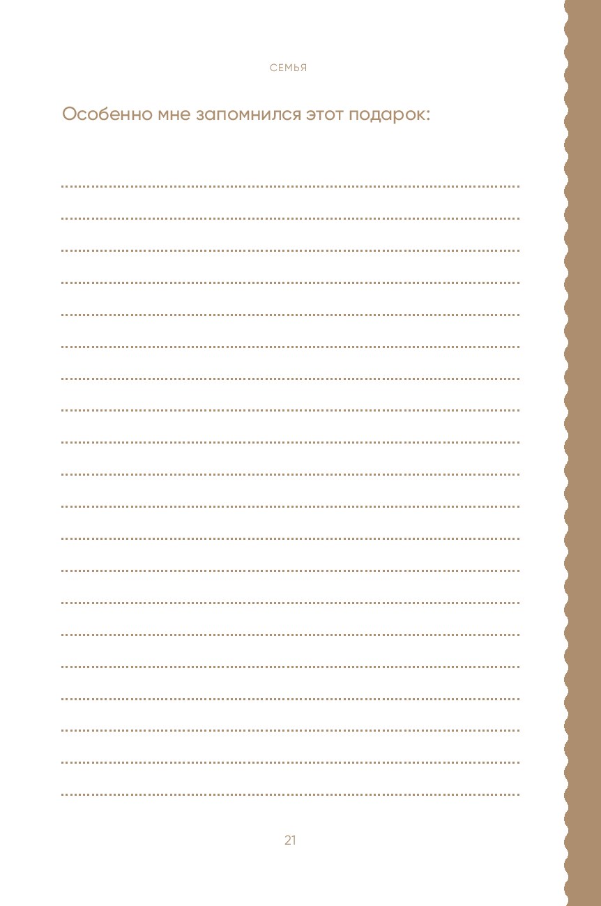 Самое ценное, что вы можете оставить будущим поколениям, – это память о времени, в котором вы жили, и людях, которые вас окружали. Начните писать историю вашей жизни. Вам нужно лишь ответить на вопросы, которые помогут вам вспомнить самые важные и драгоценные моменты: первая влюбленность, первое разочарование, традиции вашей семьи, отношения с близкими. Читайте и перечитывайте их, размышляйте над ними, радуйтесь богатой истории своей жизни.