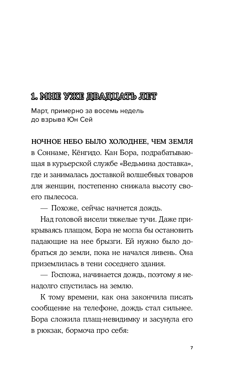 Вот уже три года Бора работает в "Ведьминой доставке". За это время она успела спасти от опасности лучшую подругу Джуын и подружиться с очаровательным экстрасенсом Микаэллой.
