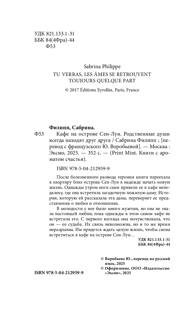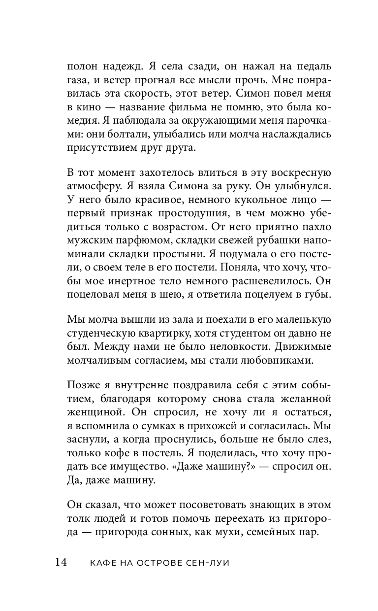 После болезненного развода героиня книги переехала в квартиру близ острова Сен-Луи в надежде начать новую жизнь. Однажды утром ноги сами привели ее в кафе неподалеку, где она встретила загадочную пожилую даму. История, которую ей рассказала эта дама, перевернет ее представления о любви и отношениях.