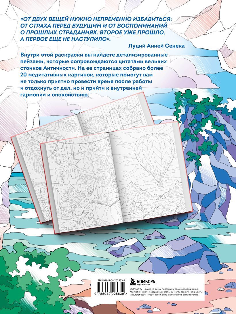 Внутри этой раскраски вы найдете детализированные пейзажи, которые сопровождаются цитатами великих стоиков. На ее страницах собрано более 20 медитативных иллюстраций, нарисованных профессиональной художницей Марией Яляевой, которые помогут вам не только приятно провести время и отдохнуть от дел, но и достичь внутренней гармонии и спокойствия.