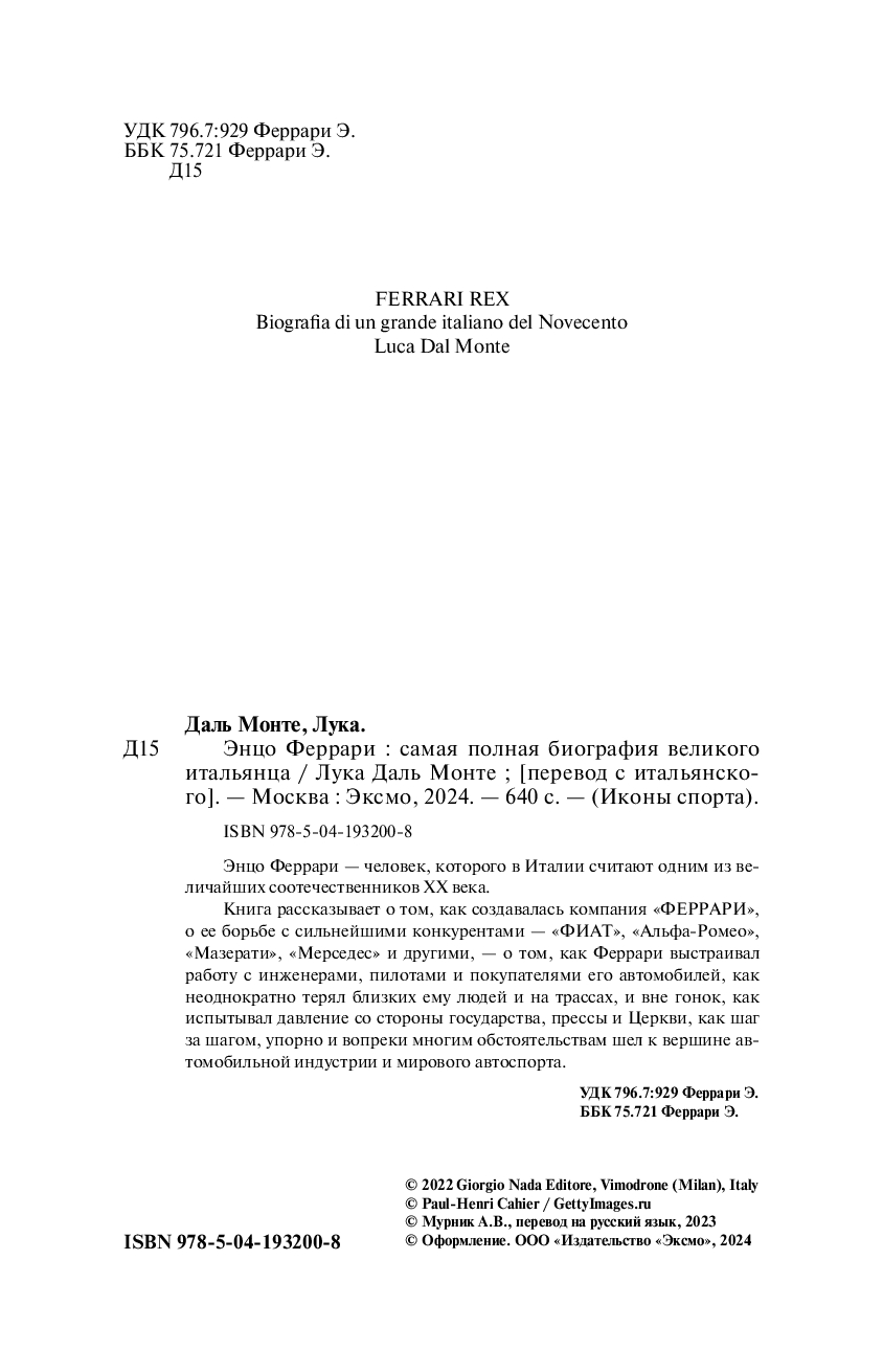 Автор детально изучил жизнь и деятельность великого конструктора спортивных автомобилей и написал его биографию на основании множества свидетельств, рассказов, мнений, книг и сообщений прессы.