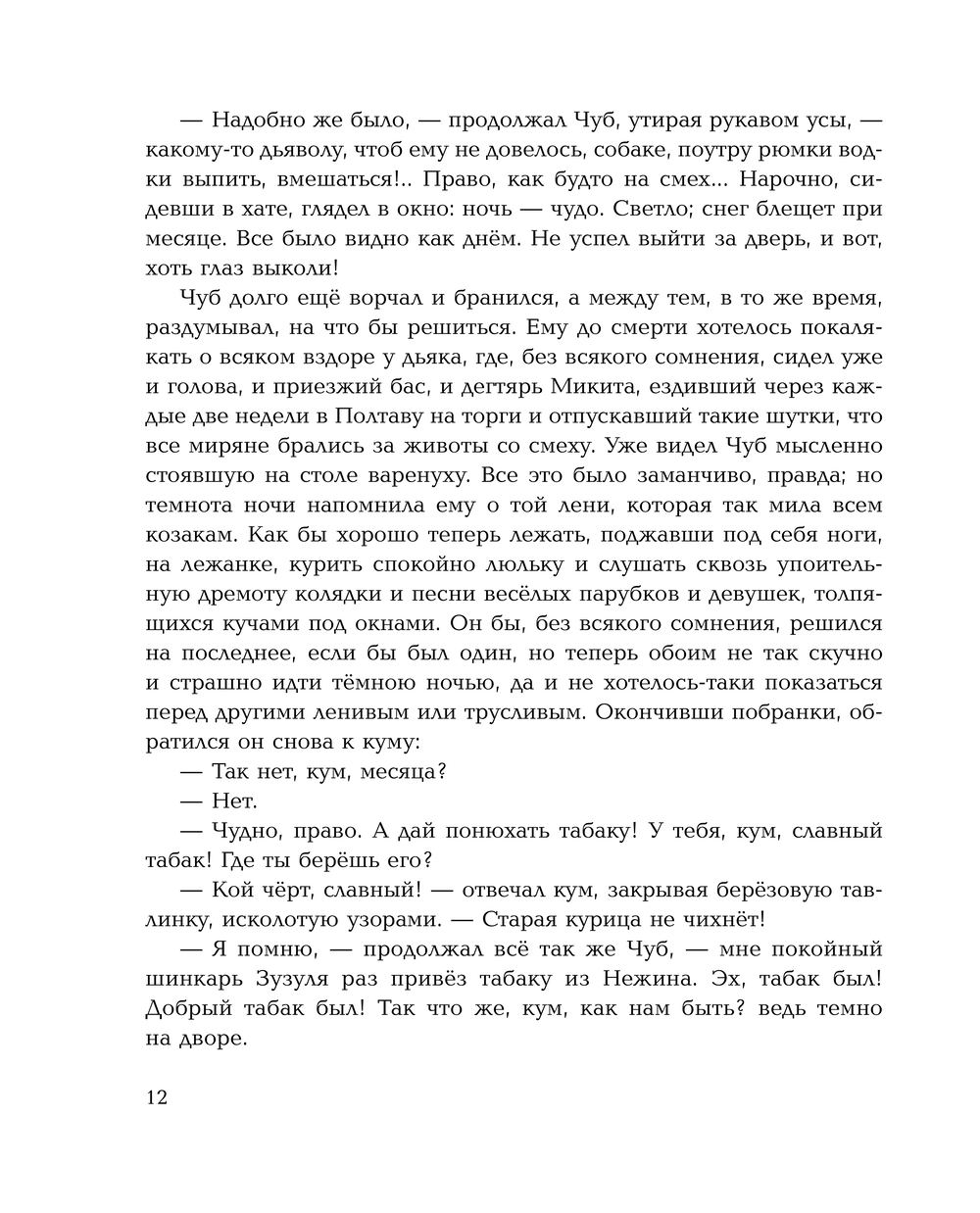 В сборник вошли повести из цикла Н. В. Гоголя "Вечера на хуторе близ Диканьки": "Ночь перед Рождеством", "Вечер накануне Ивана Купала", "Майская ночь, или Утопленница", "Пропавшая грамота" и "Заколдованное место".