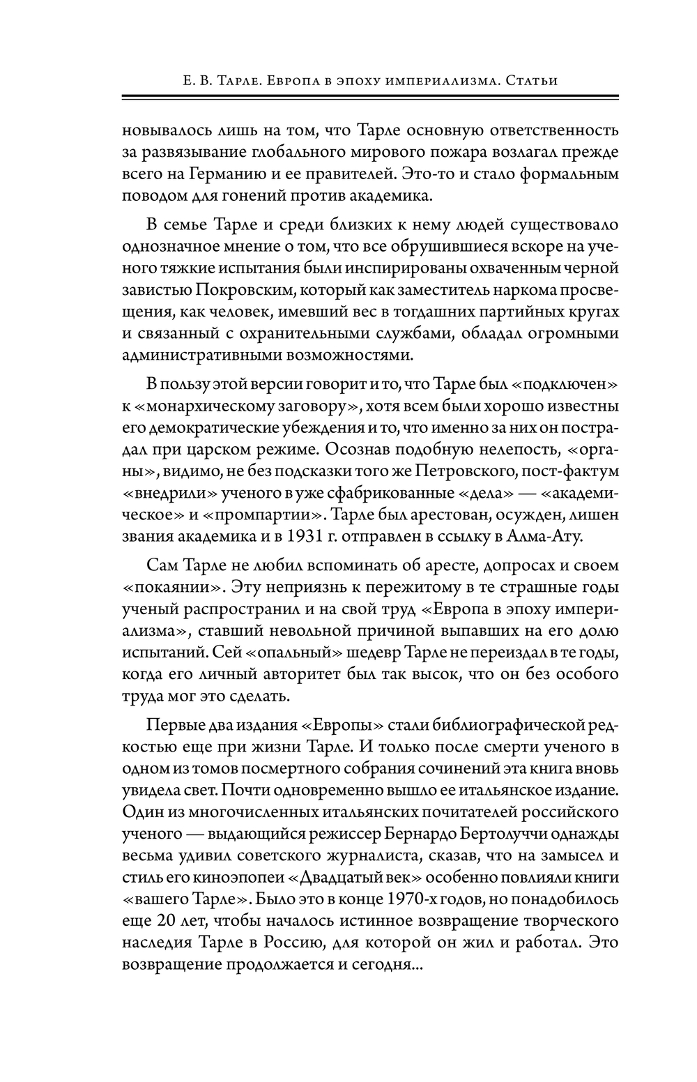 Фундаментальный труд академика Евгения Викторовича Тарле "Европа в эпоху империализма", посвященный причинам возникновения, ходу и последствиям Первой мировой войны, сразу после выхода его в свет в 1927 году стал бестселлером. Значение этого труда не померкло и сегодня. Такого глубокого исследования подводных и внешних течений мировой политики до, во время и после Первой мировой войны в отечественной науке нет до сих пор – и вряд ли уже появится. Ведь Тарле не просто внимательно и по свежим следам изучил колоссальный массив источников, появившийся в течение первого десятилетия по окончании, как ее тогда называли, Великой войны, но и гениально переработал это историческое сырье в настоящий шедевр. Перед читателем разворачивается яркая картина хитросплетений внешней политики, написанная на широком историческом фоне. Кроме собственно научной ценности, особое восхищение вызывает и литературное мастерство Тарле: читатель услышит живую человеческую речь, внятно и понятно рассказывающую о сложнейших событиях совсем недавнего для автора прошлого. Недаром книга "нашего Тарле" вдохновила выдающегося итальянского режиссера Бернардо Бертолуччи на создание его знаменитой киноэпопеи "Двадцатый век". В наше издание включены также крупные статьи академика Тарле о внешней политике России и ее соперников. Прекрасное дополнение издания – обширный, тщательно подобранный и точно размещенный по ходу повествования документальный иллюстративный материал, дающий возможность зримо представить участников, обстоятельства и ситуации этого военно-политического противостояния.