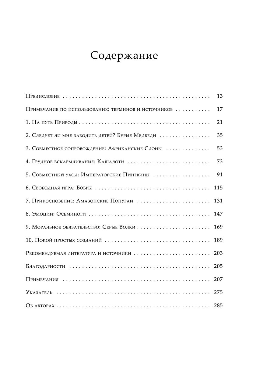 В каждой главе рассматривается специфическое для того или иного вида «гнездо развития»: образ жизни в гармонии с природой и процесс выращивания потомства, которые на протяжении миллионов лет совершенствовались в ходе эволюции до оптимального варианта.