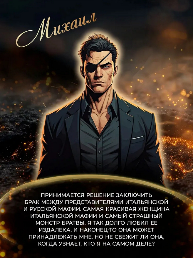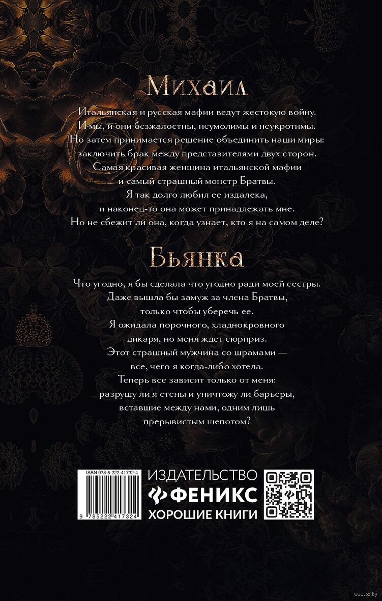 Итальянская и русская мафии ведут жестокую войну. И мы, и они безжалостны, неумолимы и неукротимы. Но затем принимается решение объединить наши миры: заключить брак между представителями двух сторон. Самая красивая женщина итальянской мафии и самый страшный монстр Братвы. Я так долго любил ее издалека,и наконец-то она может принадлежать мне. Но не сбежит ли она, когда узнает, кто я на самом деле?
