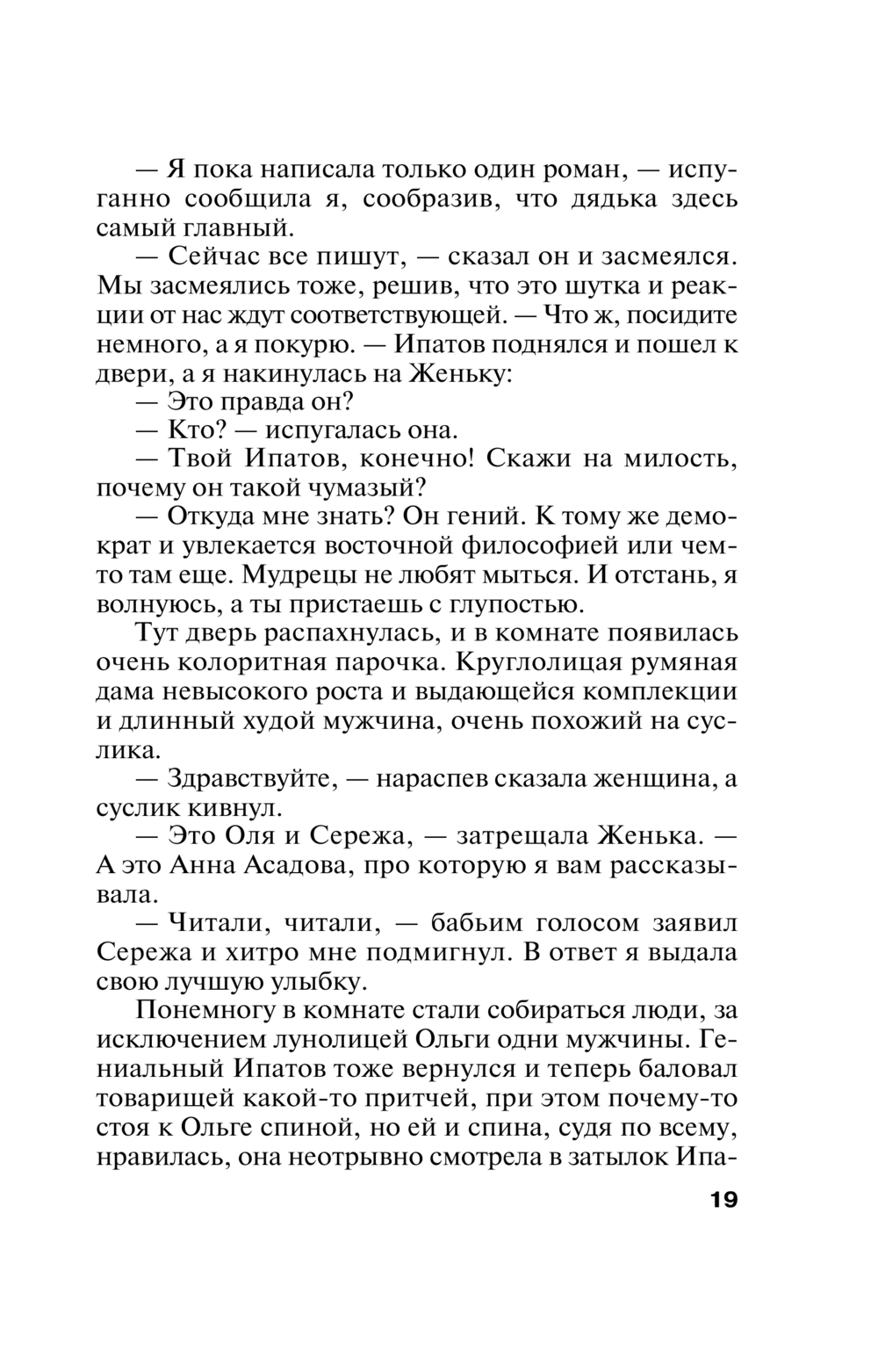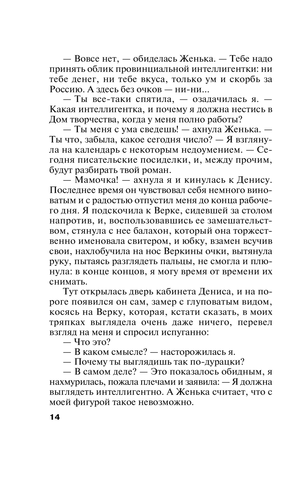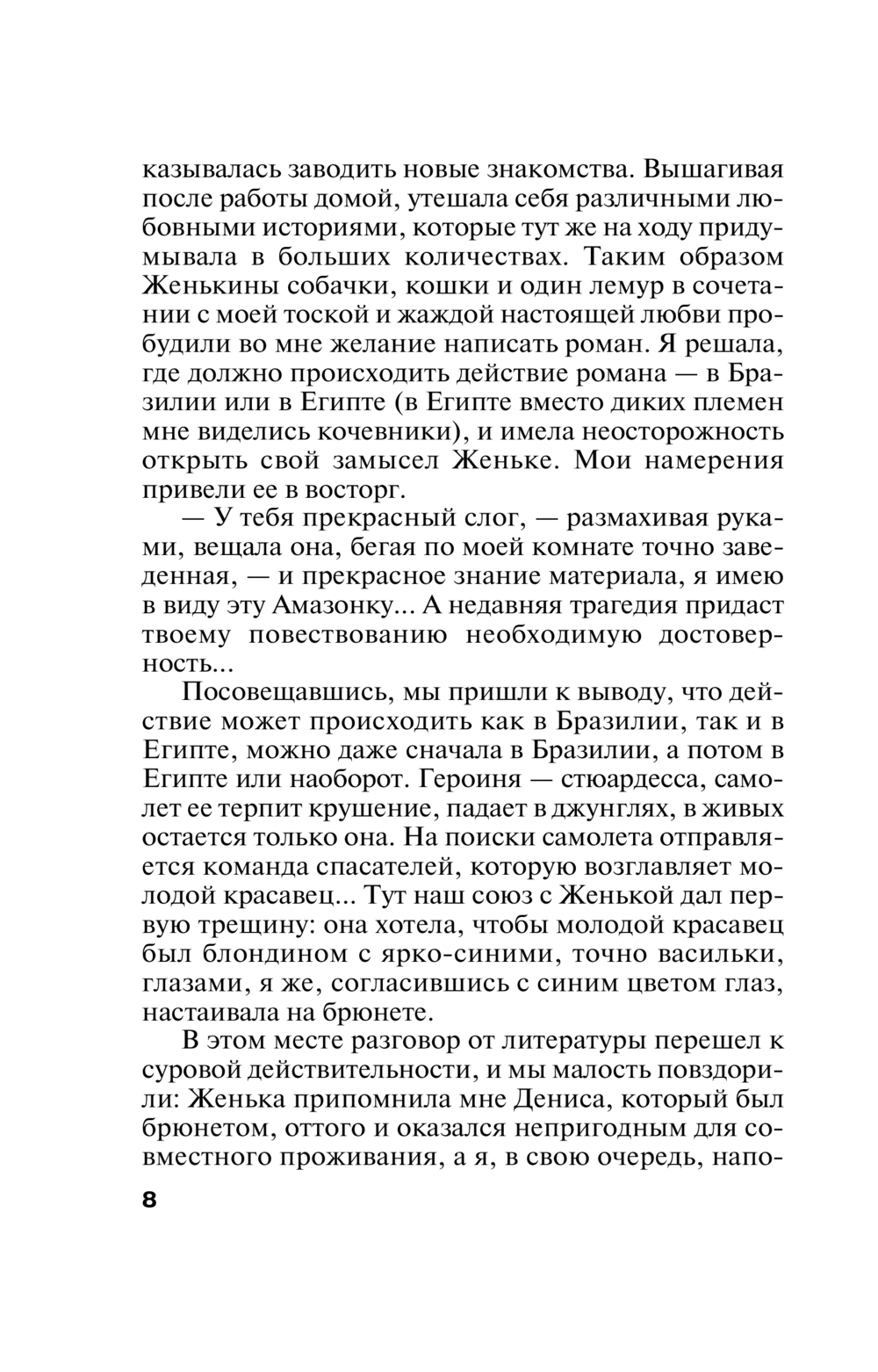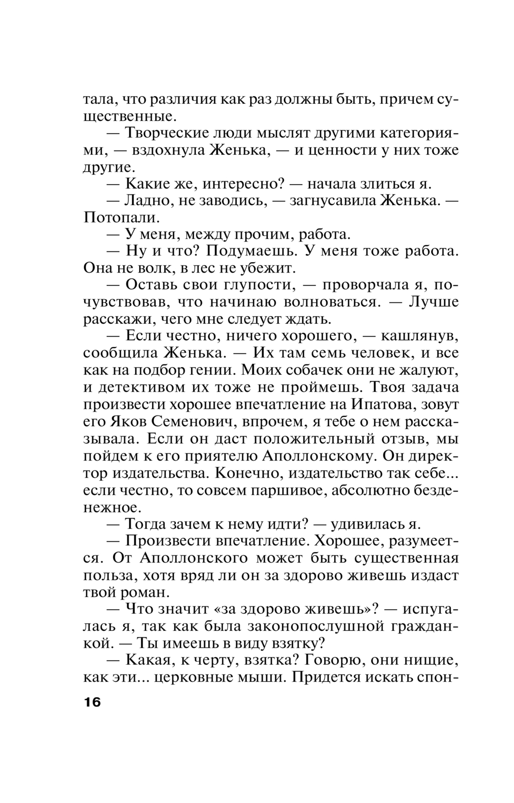 Явиться на деловое свидание в офис спонсора, пообещавшего издать твою книгу, и обнаружить его с ножом в спине – удовольствие ниже среднего. Закадычные подруги Анфиса и Женька приходят к мысли, что и эта смерть, и попытки покушения на них таинственным образом связаны с детективом, который только что написала Анфиса. Вот тут-то и начинается самое интересное...