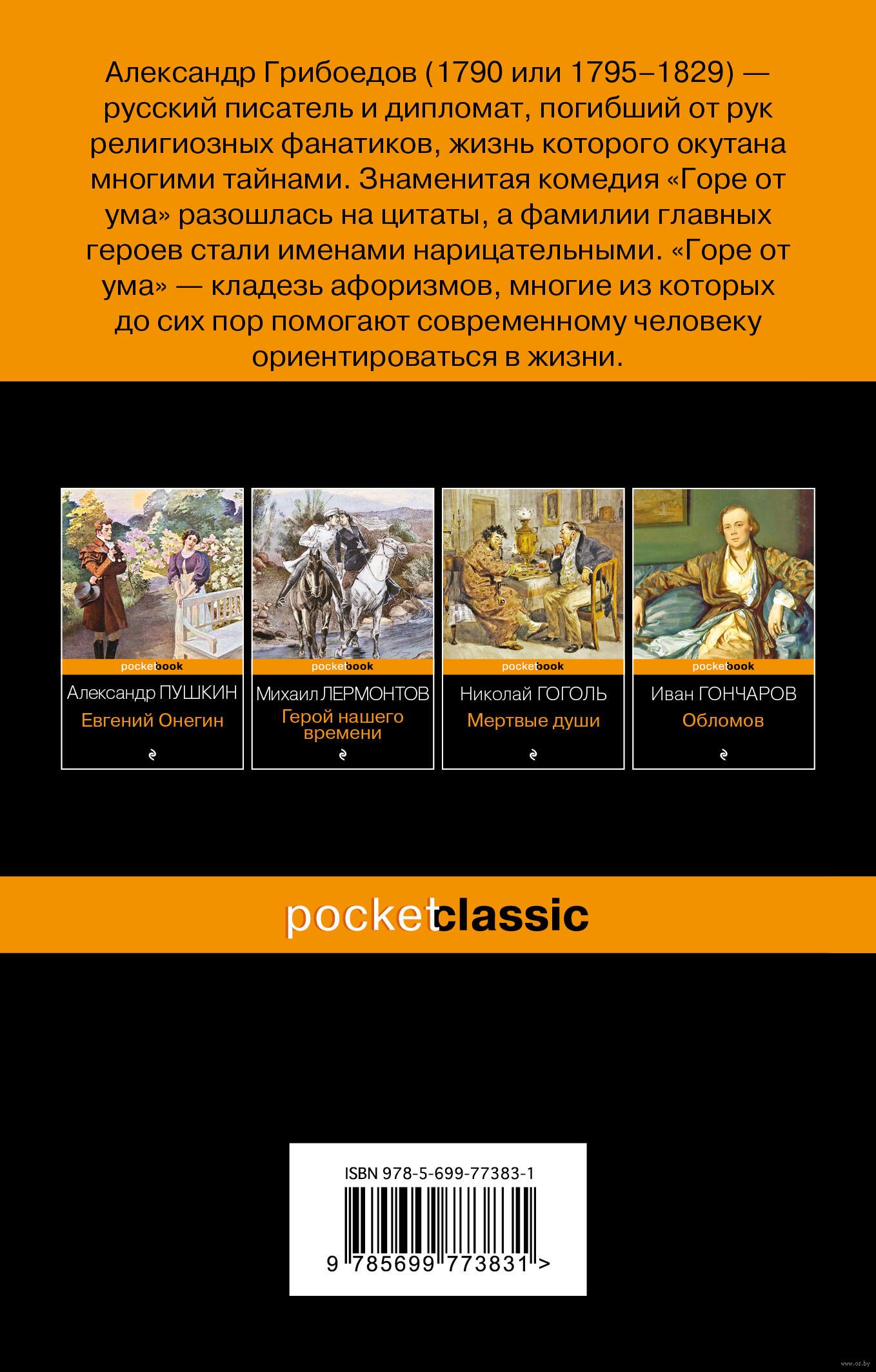 Александр Грибоедов (1790 или 1795-1829) – русский писатель и дипломат, погибший от рук религиозных фанатиков; его жизнь окутана многими тайнами. Знаменитая комедия А. Грибоедова "Горе от ума" разошлась на цитаты, а фамилии главных героев стали именами нарицательными и общепризнанно обозначают типы психологических характеров. "Горе от ума" – кладезь афоризмов, многие из которых до сих пор помогают современному человеку ориентироваться в жизни.