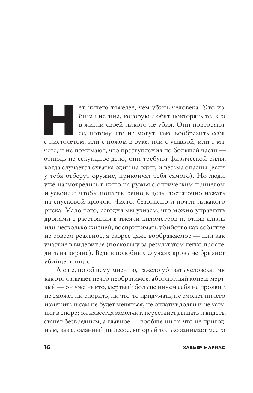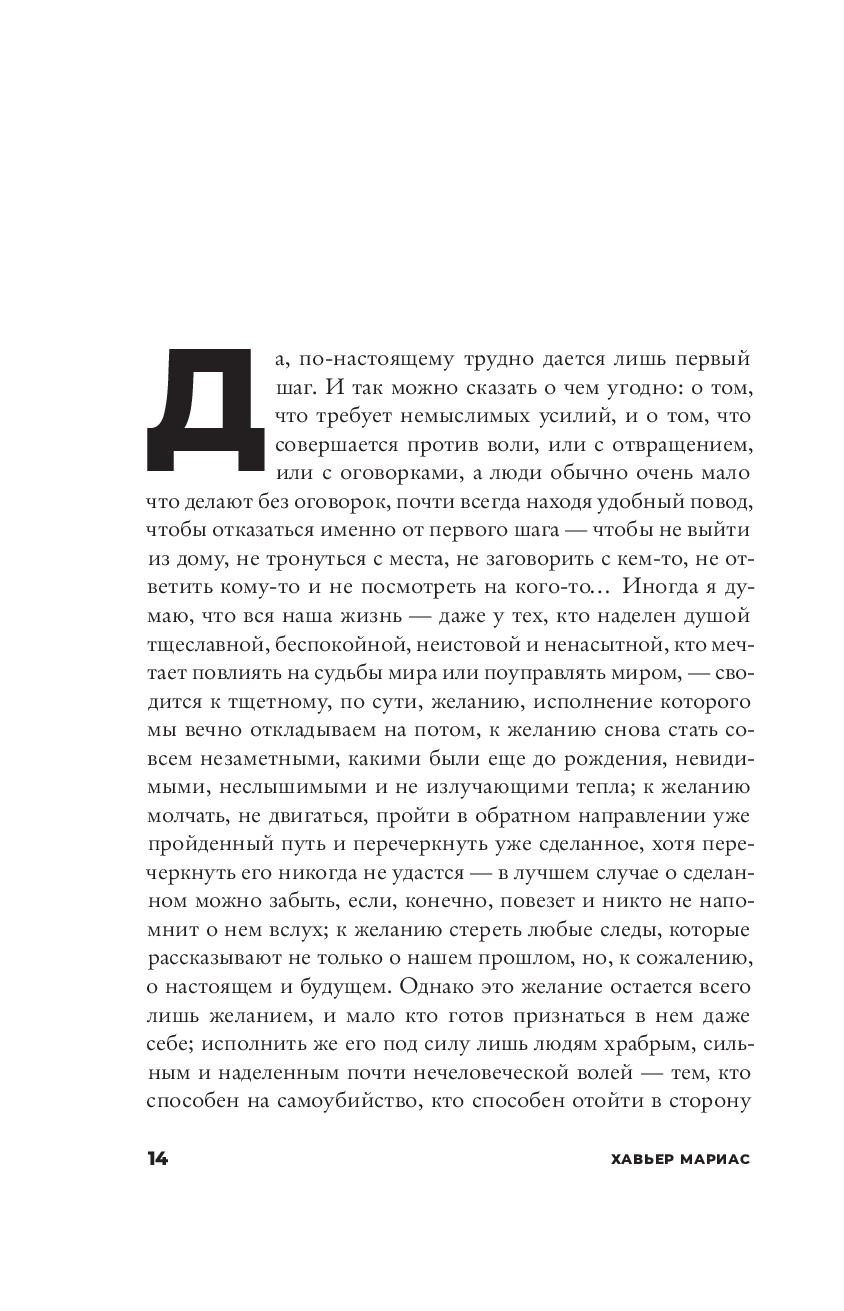 Хавьер Мариас (1951–2022) – один из самых крупных испанских писателей, автор 17 романов, изданных в 59 странах, лауреат десятков литературных наград, среди которых испанские премия Королевской академии, Национальная премия, Премия критики, а также французская “Фемина”, итальянская Гринцане-Кавур, международные премии Альберто Моравиа и Formentor.