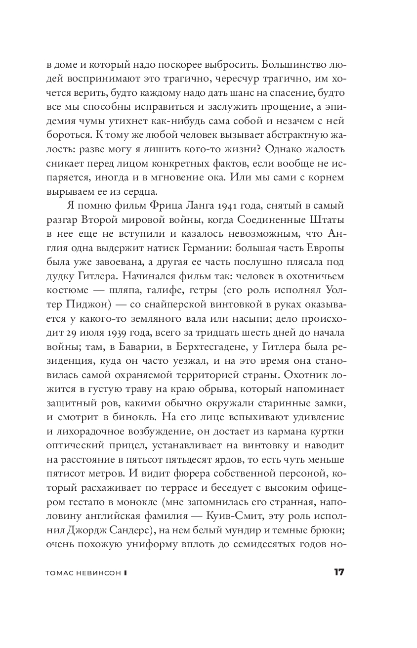 Томас Невинсон, бывший агент британских спецслужб, после отставки, которую считал окончательной, вернулся на родину в Испанию, к своей жене Берте Исле, но неожиданно получил новое задание – разоблачить террористку, повинную в гибели десятков людей. За годы службы Томас твердо усвоил, что борьба со злом требует самых решительных мер, и привык слепо выполнять любые приказы. Однако теперь его преследуют мучительные сомнения. Можно ли брать на себя роль защитника справедливости и мстителя, обходя закон? И можно ли преступить заповедь “Не убий” во имя высших целей, оберегая мир от грозящих ему бед? Последний роман Хавьера Мариаса “Томас Невинсон” (2021) является продолжением его знаменитой “Берты Ислы”, но в то же время это история с самостоятельным сюжетом. Книга уже переведена на многие языки и получила самые высокие оценки критики.