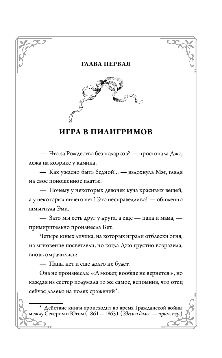 Далеко на Юге бушует Гражданская война. Отец семейства Марч ушел на фронт, а его жена и четыре дочери – добрая Мэг, непокорная Джо, кроткая Бет и мечтательная Эми – изо всех сил стараются не унывать и вести нормальный образ жизни.