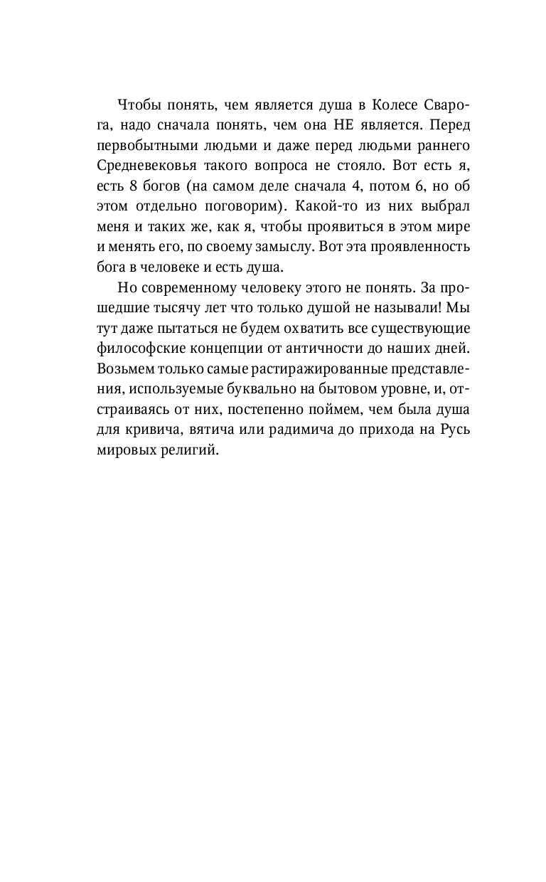 Чтобы понять, чем является душа в славянском язычестве, надо сначала определить, чем она не является. За прошедшие пару тысяч лет что только душой не называли! Эта книга не пытается охватить все существующие философские концепции от Античности до наших дней – анализирует только самые популярные: от индийских дош и римских гениев до галеновских темпераментов и архетипов К. Пирсон.