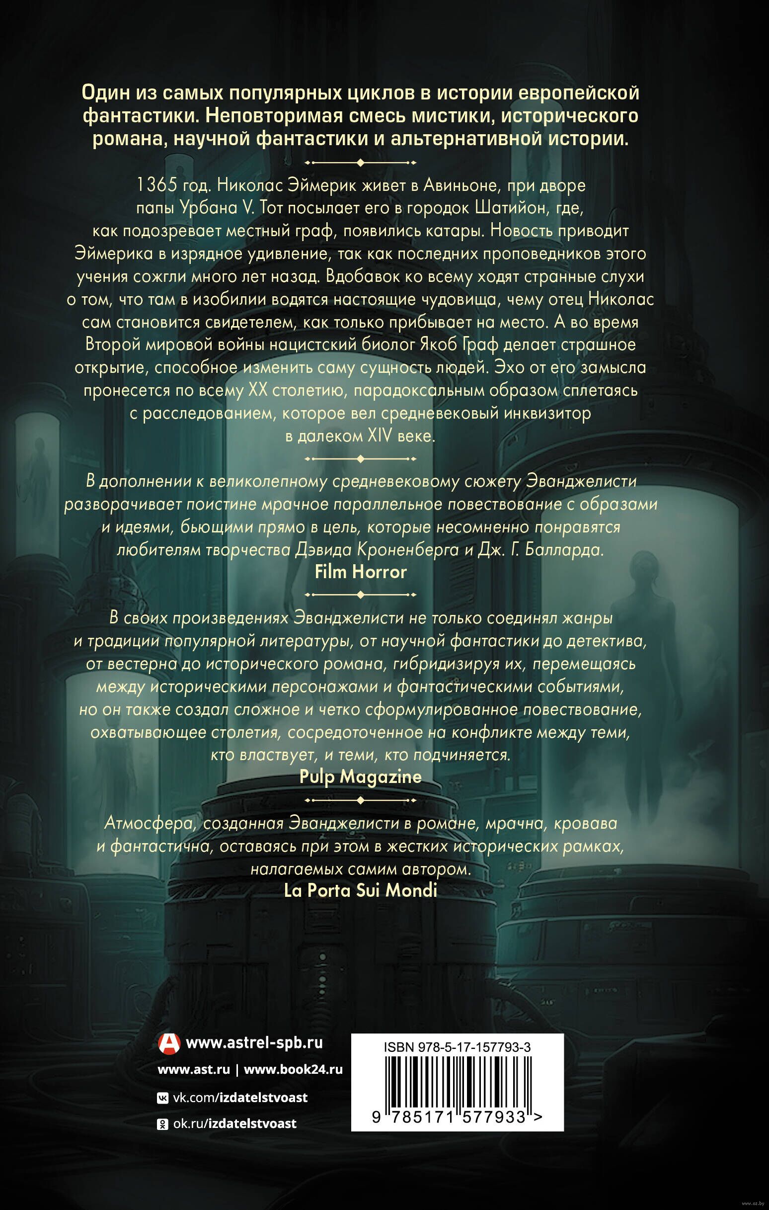 1365 год. Николас Эймерик живет в Авиньоне, при дворе папы Урбана V. Тот посылает его в городок Шатийон, где, как подозревает местный граф, появились катары. Новость приводит Эймерика в изрядное удивление, так как последних проповедников этого учения сожгли много лет назад. Вдобавок ко всему ходят странные слухи о том, что там в изобилии водятся настоящие чудовища, чему отец Николас сам становится свидетелем, как только прибывает на место. А во время Второй мировой войны нацистский биолог Якоб Граф делает страшное открытие, способное изменить саму сущность людей. Эхо от его замысла пронесется по всему XX столетию, парадоксальным образом сплетаясь с расследованием, которое вел средневековый инквизитор в далеком XIV веке.