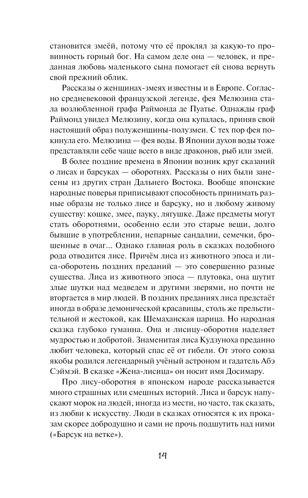 Собрание японских сказок, повествований о различных чудесах, добрых и страшных, смешных и грустных, лукавых и назидательных, и всегда поражающих своей оригинальностью и эмоциональной глубиной. В ней читатель, большой и маленький, познакомится с проказливыми лешими – тэнгу и водяными каппа, прекрасными девами-птицами и женщинами-змеями, коварными оборотнями лисами и барсуками, весельчаком и балагуром Хикоити.