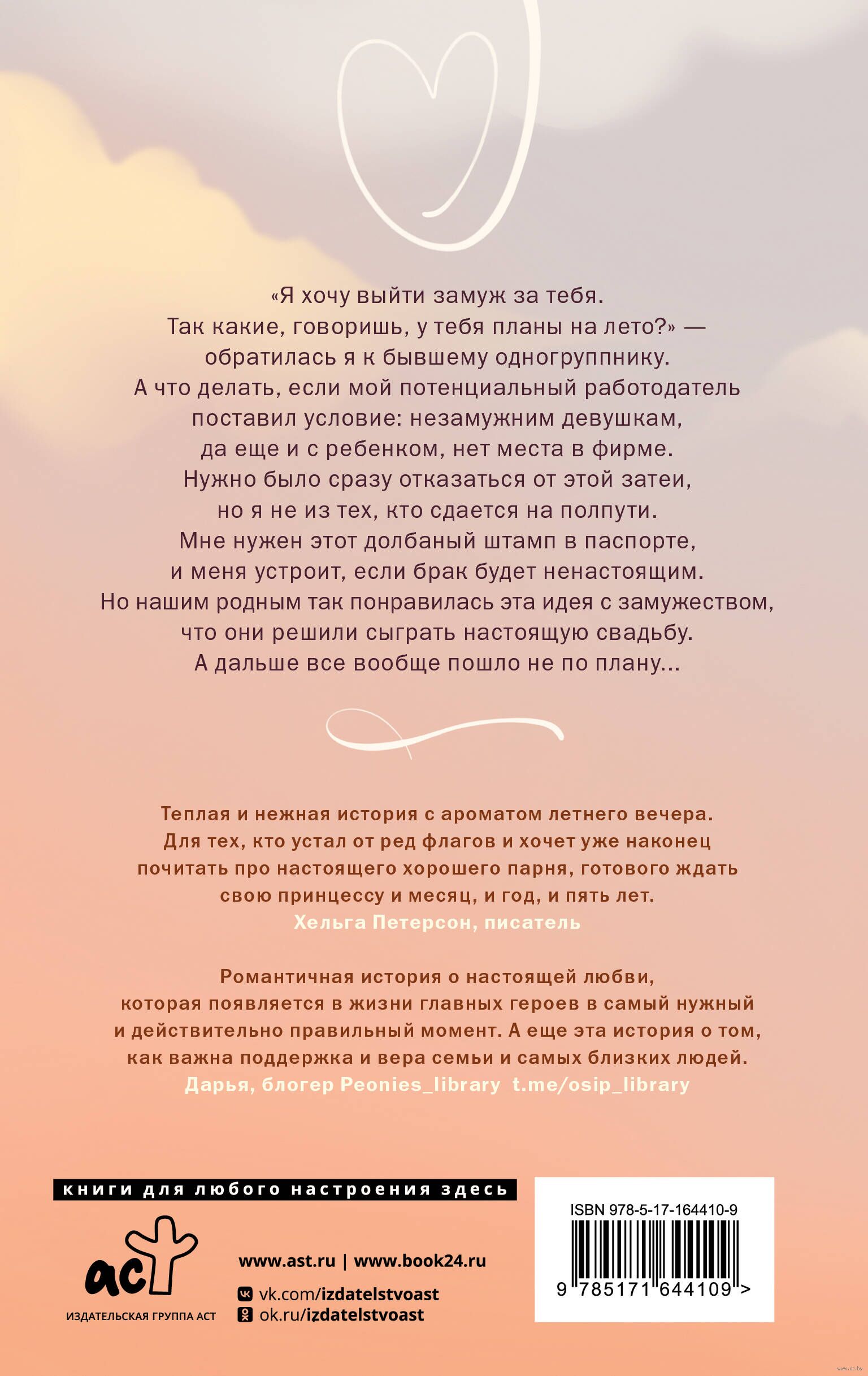 "Я хочу выйти замуж за тебя. Так какие, говоришь, у тебя планы на лето?" – обратилась я к бывшему одногруппнику. А что делать, если мой потенциальный работодатель поставил условие: незамужним девушкам, да еще и с ребенком, нет места в фирме. Нужно было сразу отказаться от этой затеи, но я не из тех, кто сдается на полпути. Мне нужен этот долбаный штамп в паспорте, и меня устроит, если брак будет ненастоящим. Но нашим родным так понравилась эта идея с замужеством, что они решили сыграть настоящую свадьбу. А дальше все вообще пошло не по плану...