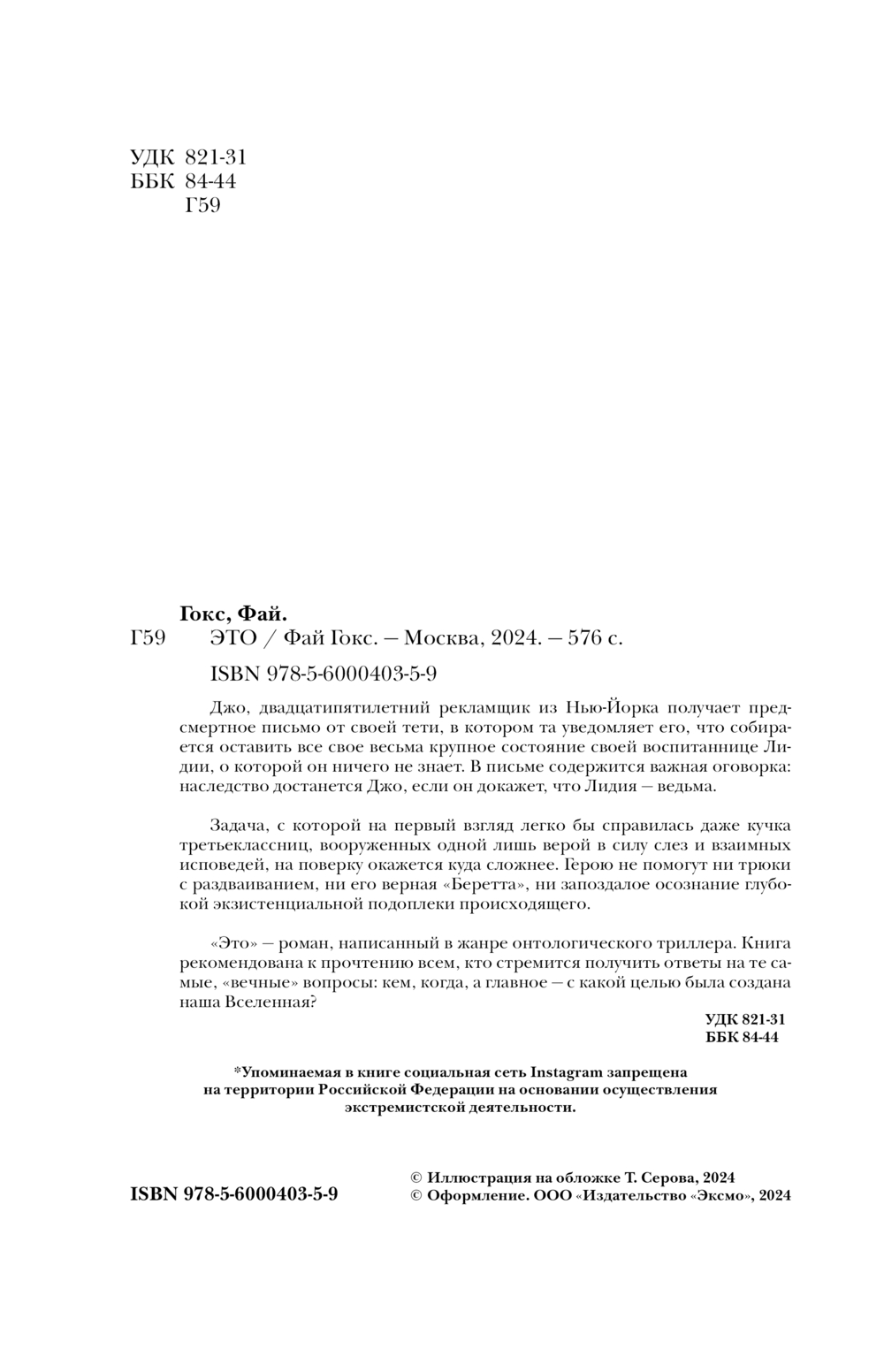 | Изготовитель | ООО «Издательство «Эксмо». РФ, г. Москва, ул. Клары Цеткин, 18, корп. 5 |