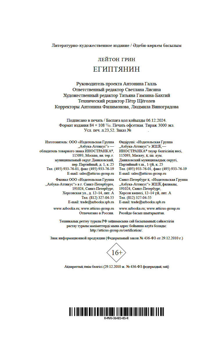 | Изготовитель | ООО "Издательство "Иностранка". 109017, РФ, г. Москва, ул. Пятницкая, 41 |