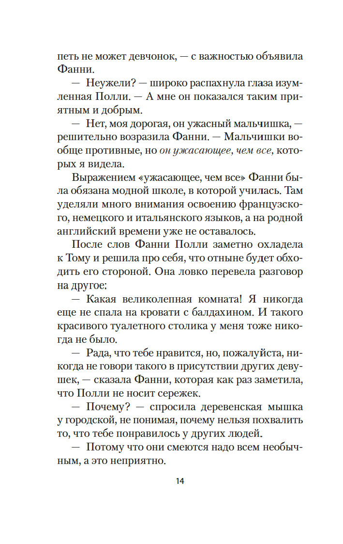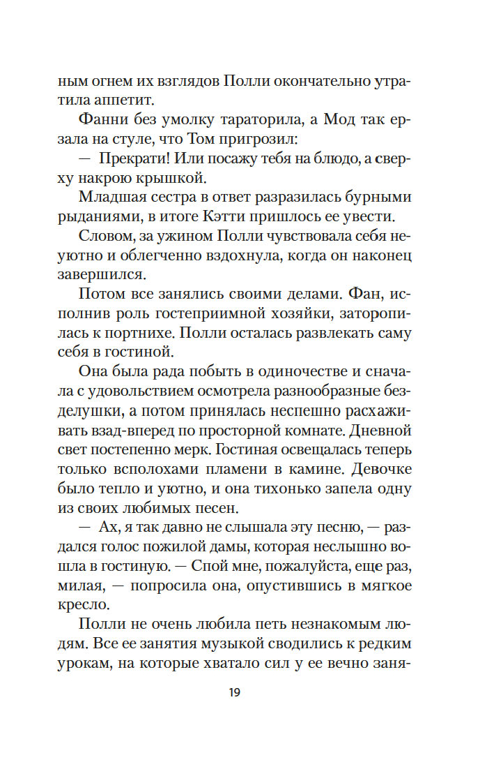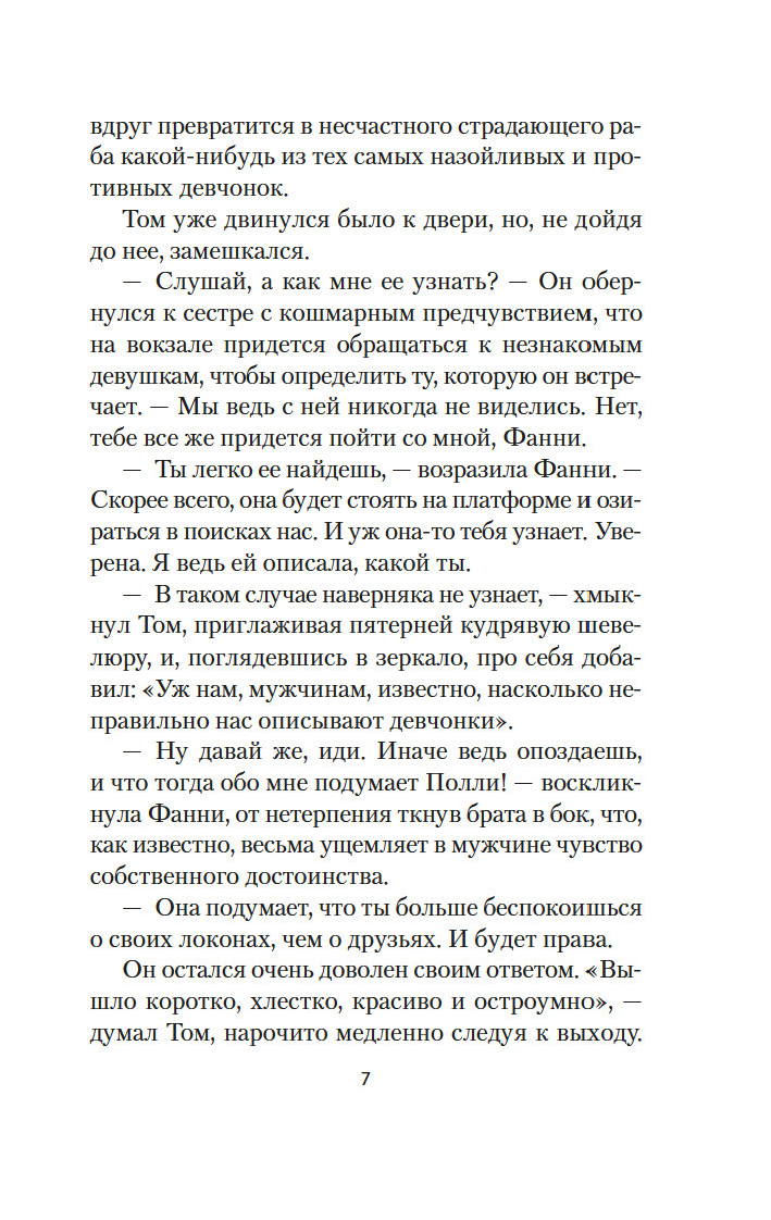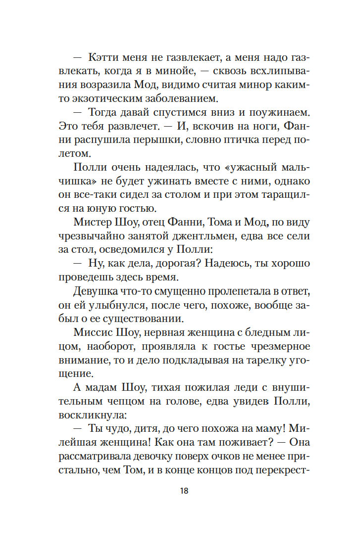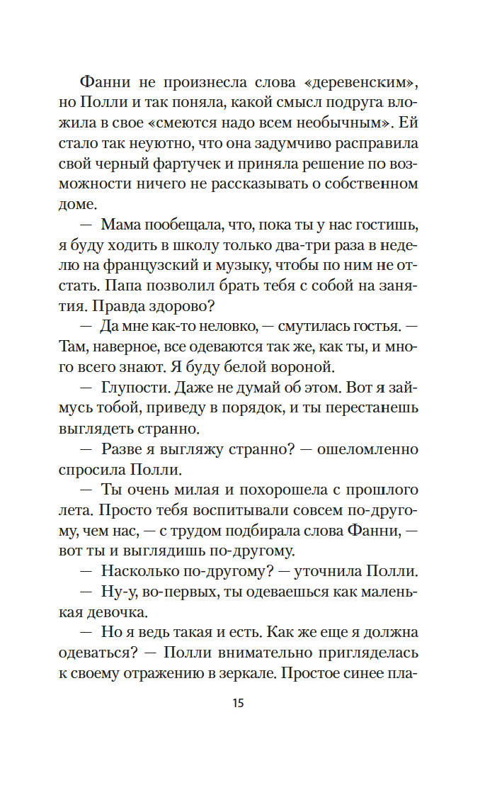 С раннего детства Полли усвоила, что главными ценностями в жизни являются трудолюбие, взаимная поддержка и сострадание. Она убеждена, что настоящее счастье или любовь нельзя купить. Однако, приехав погостить к своей подруге Фанни, Полли чувствует себя белой вороной: ее скромность и простосердечие, ее неброские платья выглядят бесконечно старомодными в роскошном доме, где девушки щеголяют яркими нарядами в окружении молодых кавалеров... Однако "старомодность" Полли, ее доброта и здравомыслие оказываются значительно важнее "модных навыков и манер".