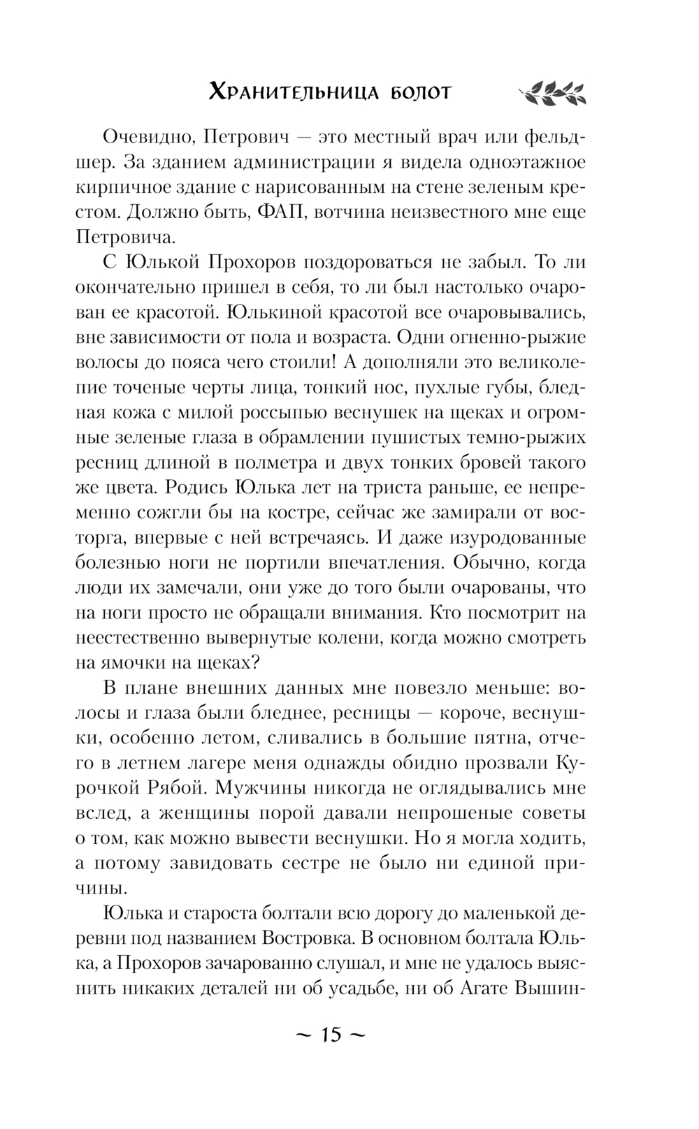 Кому-то бабушки оставляют домики на Лазурном берегу, а популярной писательнице Эмилии Вышинской досталась в наследство старая усадьба среди полесских болот. Но это оказалось именно то, что сейчас нужно Эмилии, переживающей творческий и семейный кризис. Захватив с собой младшую сестру, Эмилия приезжает в усадьбу на правах новой хозяйки. Ей предстоит узнать, какие тайны на протяжении нескольких веков скрывали Вышинские, кто живет в лесу за усадьбой, а также почему Агату Вышинскую, оставившую ей наследство, называли Хранительницей.