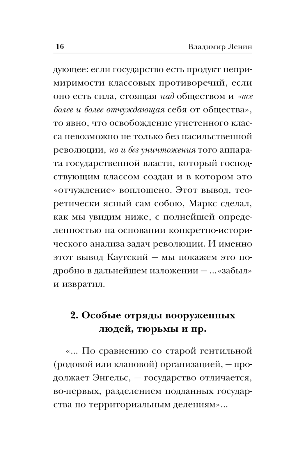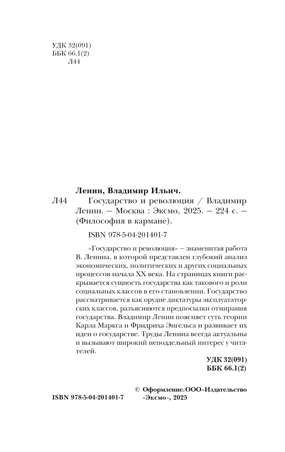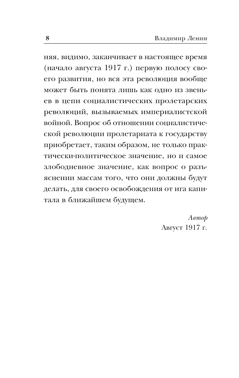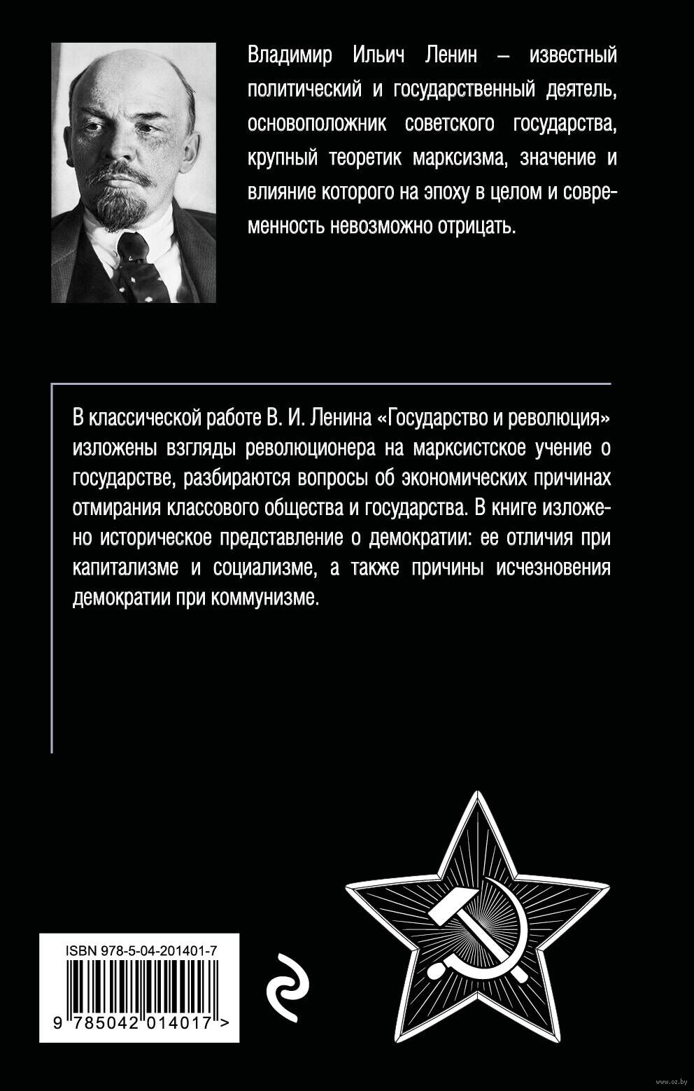 "Государство и революция" – знаменитая работа В. Ленина, в которой представлен глубокий анализ экономических, политических и других социальных процессов начала XX века. На страницах книги раскрывается сущность государства как такового и роли социальных классов в его становлении. Государство рассматривается как орудие диктатуры эксплуататорских классов, разъясняются предпосылки отмирания государства. Владимир Ленин поясняет суть теории Карла Маркса и Фридриха Энгельса и развивает их идеи о государстве. Труды Ленина всегда актуальны и вызывают широкий неподдельный интерес у читателей.