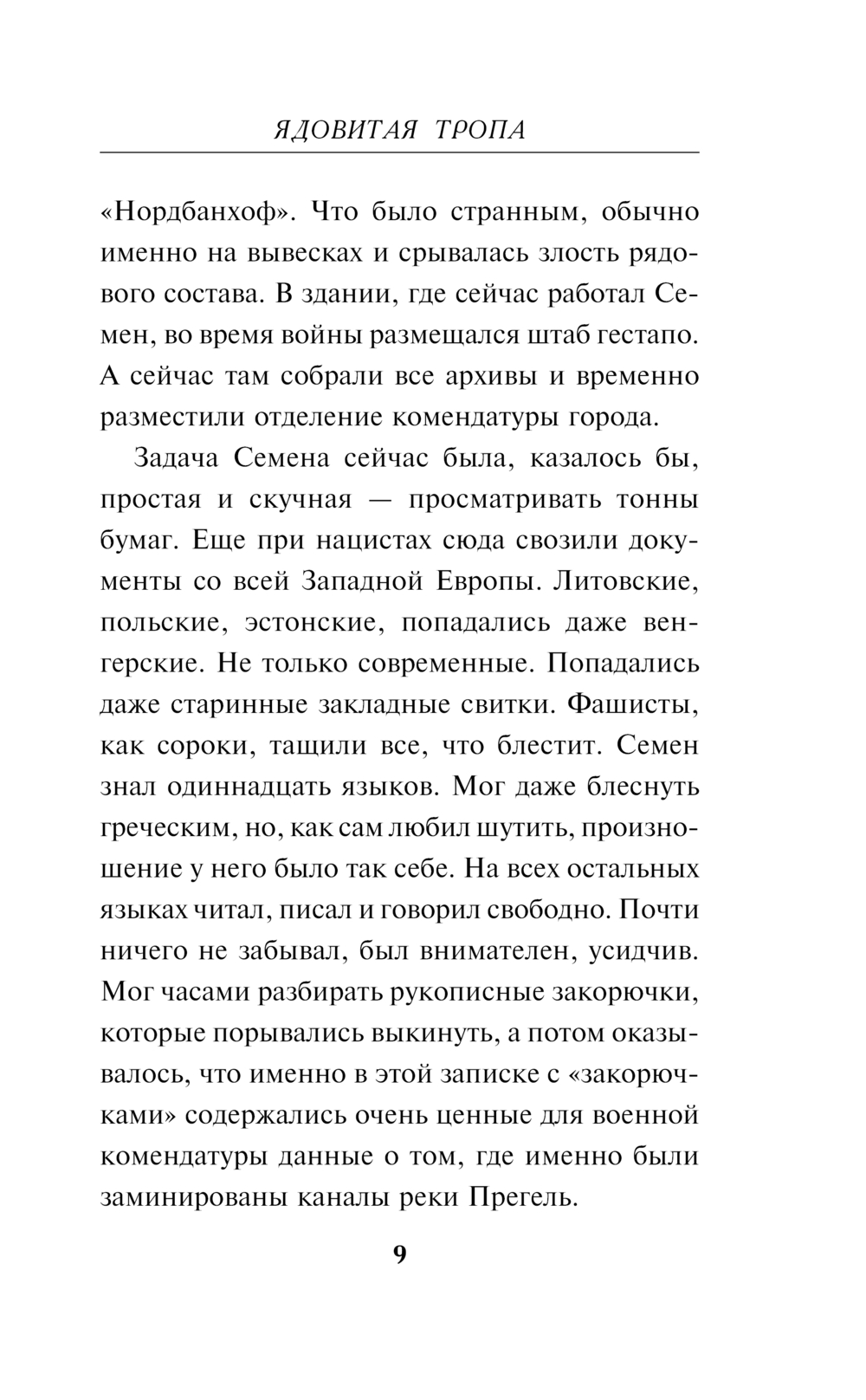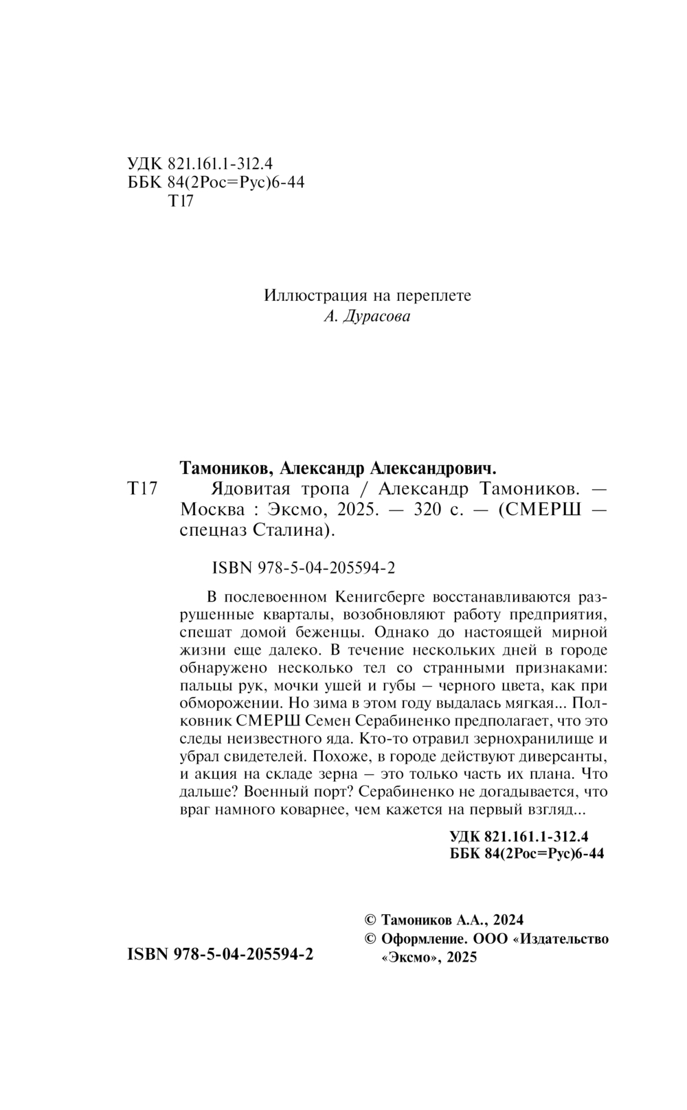 В послевоенном Кенигсберге восстанавливаются разрушенные кварталы, возобновляют работу предприятия, спешат домой беженцы. Однако до настоящей мирной жизни еще далеко. В течение нескольких дней в городе обнаружено несколько тел со странными признаками: пальцы рук, мочки ушей и губы – черного цвета, как при обморожении. Но зима в этом году выдалась мягкая... Полковник СМЕРШ Семен Серабиненко предполагает, что это следы неизвестного яда. Кто-то отравил зернохранилище и убрал свидетелей. Похоже, в городе действуют диверсанты, и акция на складе зерна – это только часть их плана. Что дальше? Военный порт? Серабиненко не догадывается, что враг намного коварнее, чем кажется на первый взгляд...
