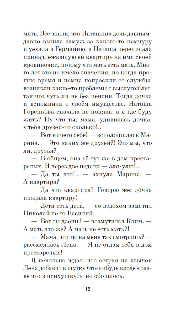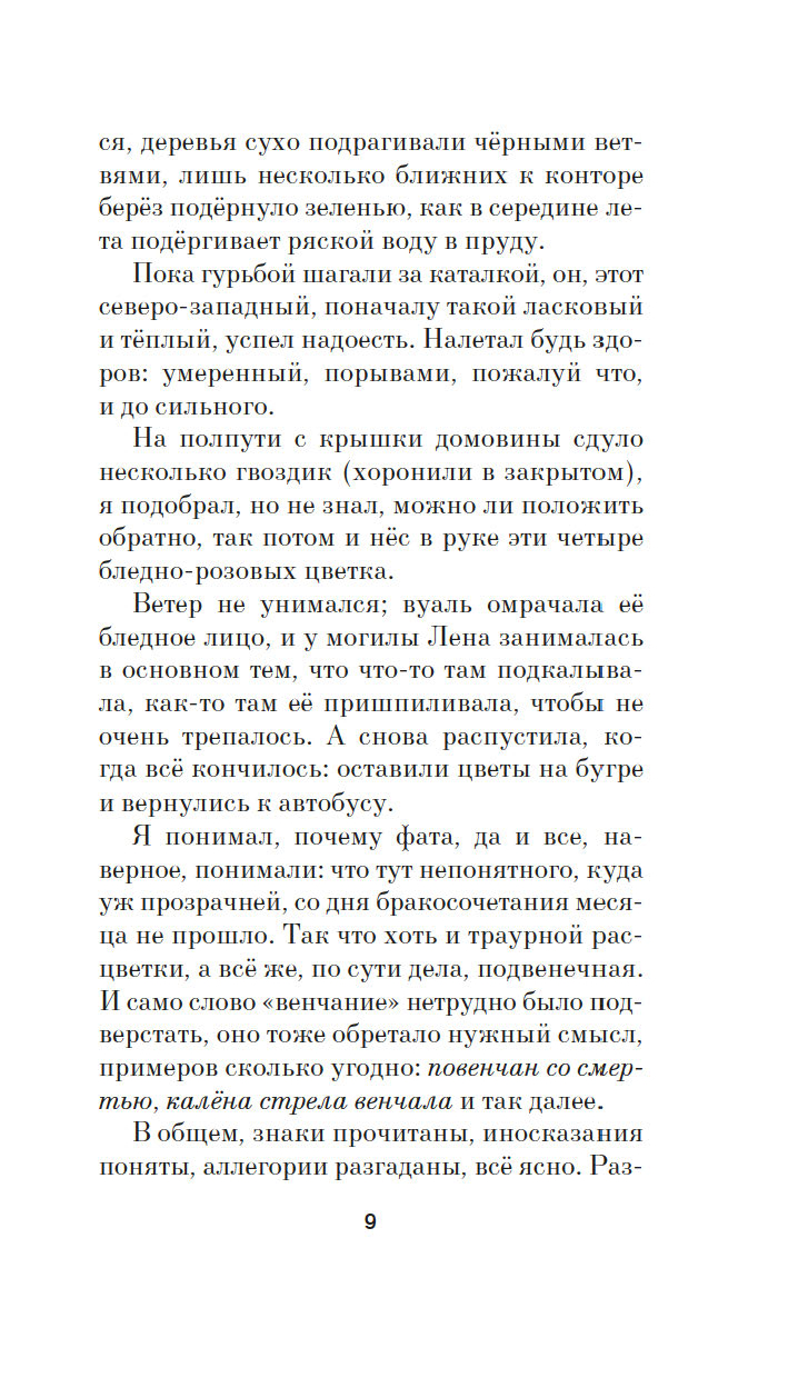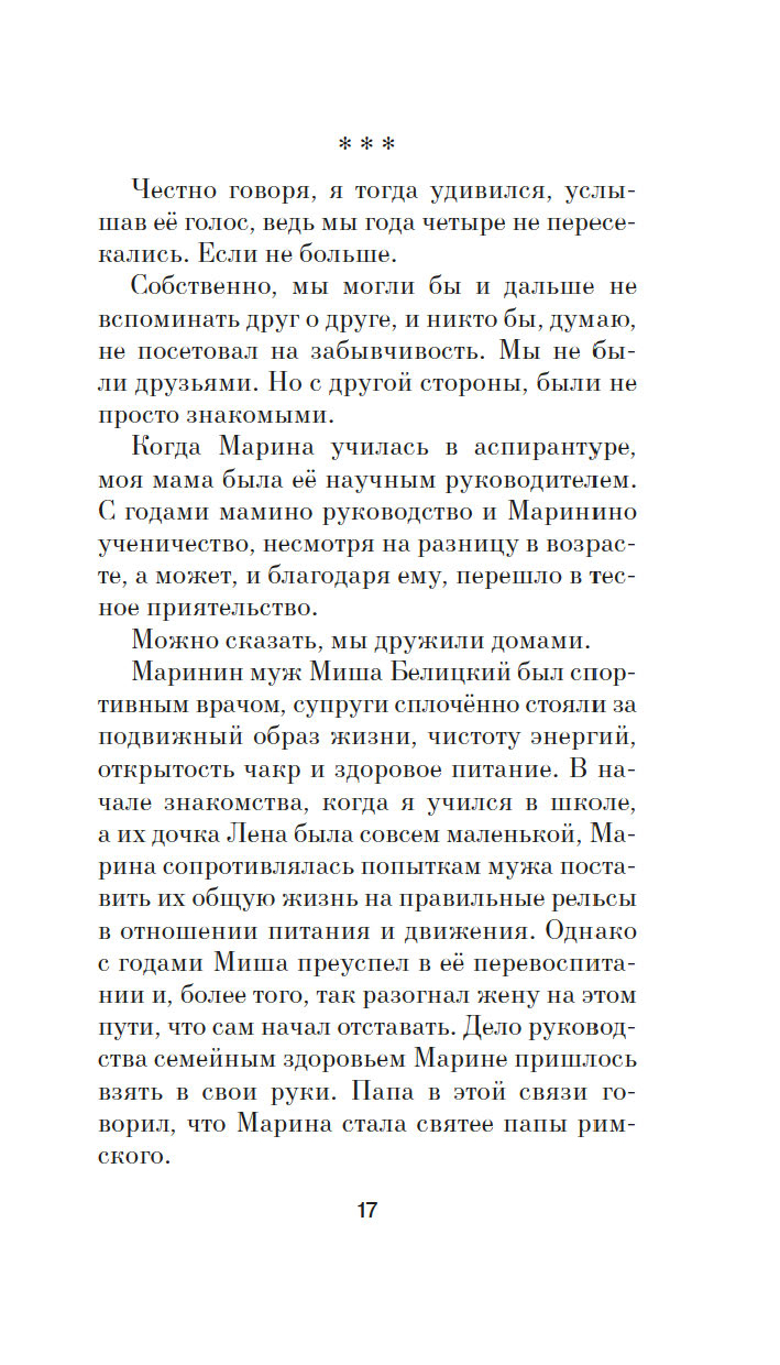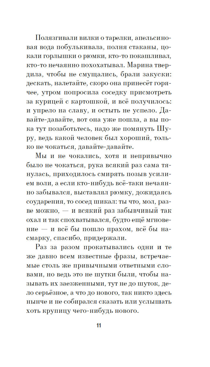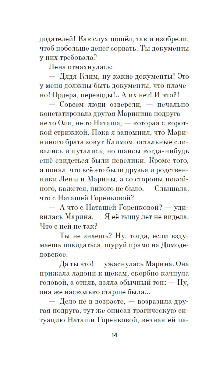 Однажды в квартире главного героя – писателя раздаётся телефонный звонок: старая знакомая зовёт его на похороны зятя. Преуспевающий бизнесмен скончался внезапно, совсем ничего не оставив молодой жене. Случившееся вызывает в памяти писателя цепочку событий: страстный роман с Лилианой, дочерью умеренно известного советского режиссёра Василия Кондрашова, поездки на их дачу, прогулки, во время которых он помогал Кондрашову подготовиться к написанию мемуаров, и, наконец, внезапная смерть старика. В идиллические отношения писателя и Лилианы вторгается Александр – с виду благополучный предприниматель, но только на первый взгляд... У этой истории – несколько сюжетных линий, в которых есть элементы триллера, и авантюрного романа, и семейной саги. Роман-головоломка, который обманывает читательские ожидания страница за страницей.