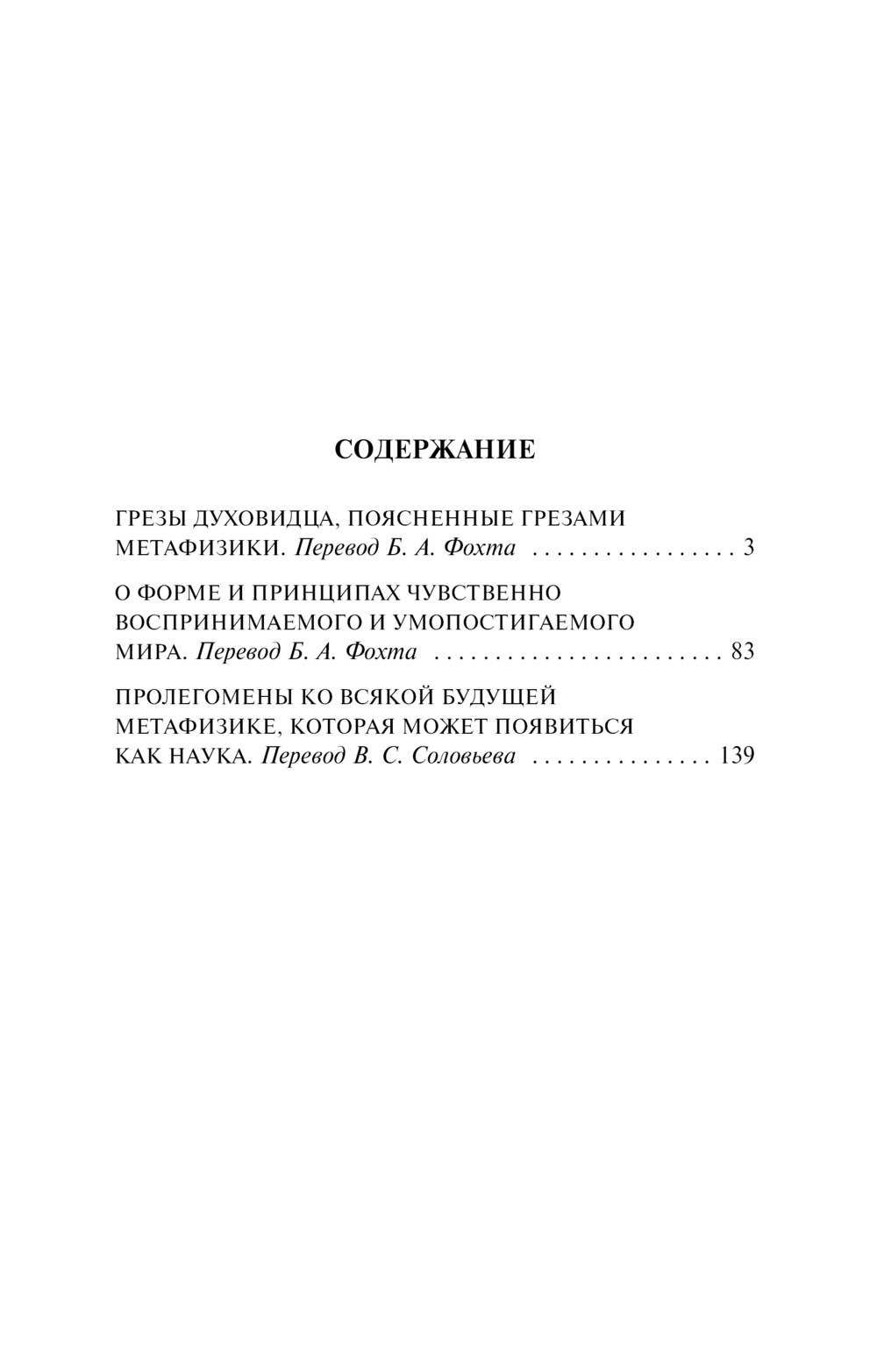 В сборник входят также произведения "Грезы духовидца, поясненные грезами метафизики", в котором Кант остроумно и изящно критикует мистика Сведенборга, и "О форме и принципах чувственно воспринимаемого и интеллигибельного мира"