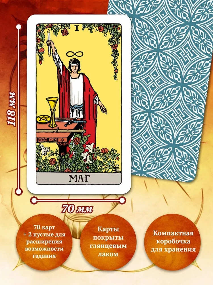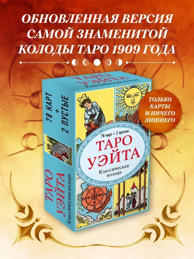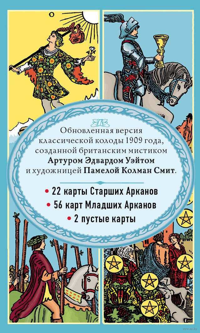 Золотая классика Таро! Обновленная версия самой знаменитой колоды 1909 года, созданной британским мистиком Артуром Эдвардом Уэйтом и художницей Памелой Колман Смит.