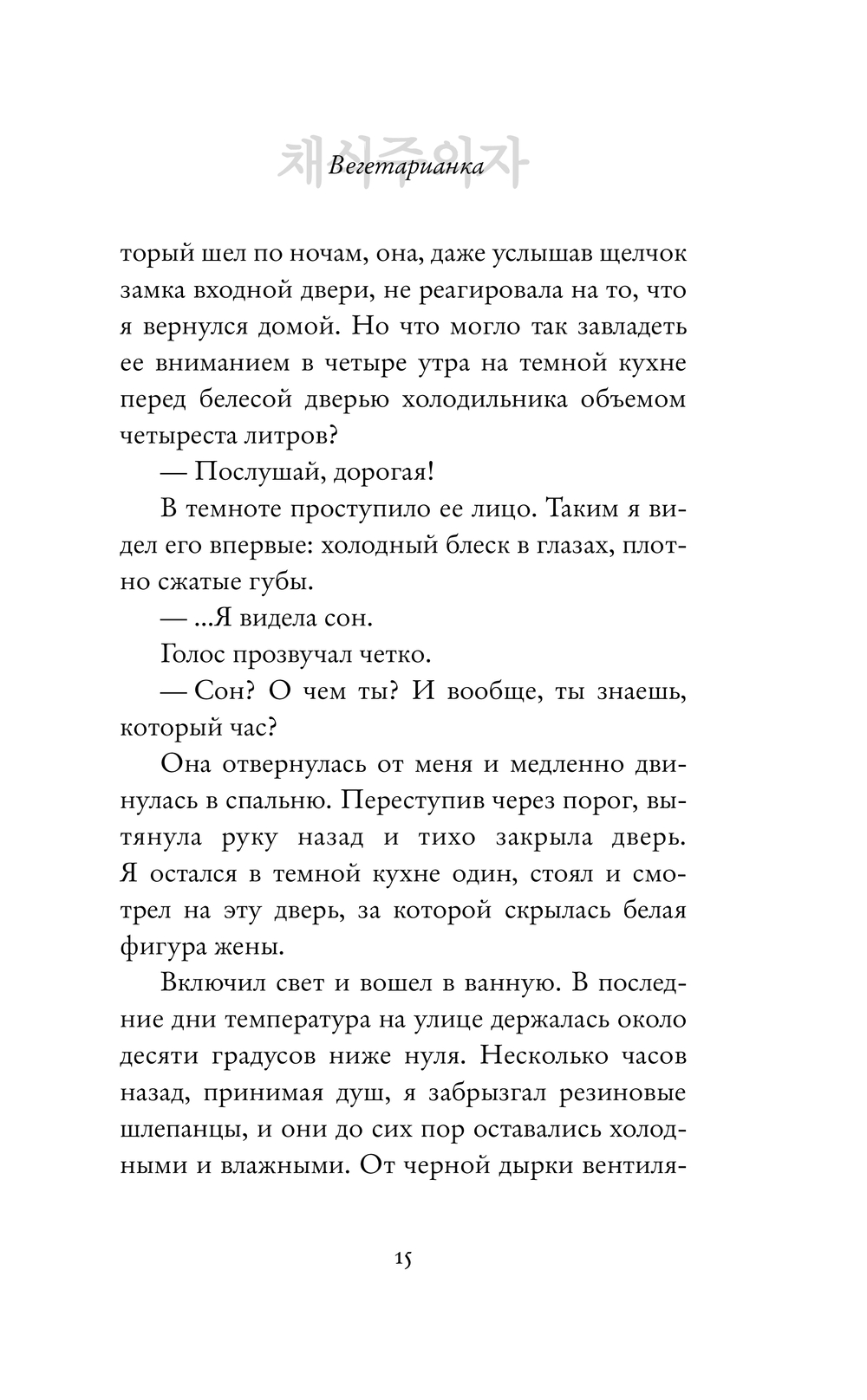 Отмеченный критиками всего мира роман "Вегетарианка" – это мрачная, кафкианская аллегория о власти, наваждении и борьбе, которую ведет женщина, желающая освободиться от насилия снаружи и внутри себя.