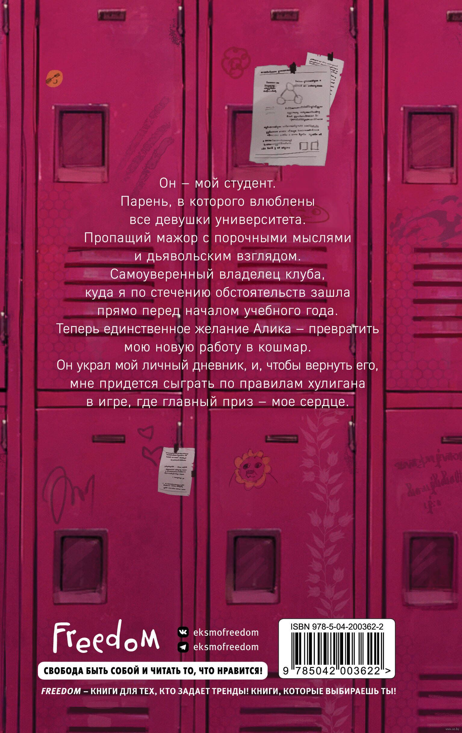 Он – мой студент. Парень, в которого влюблены все девушки университета. Пропащий мажор с порочными мыслями и дьявольским взглядом. Самоуверенный владелец клуба, куда я по стечению обстоятельств зашла прямо перед началом учебного года. Теперь единственное желание Алика – превратить мою новую работу в кошмар. Он украл мой личный дневник, и, чтобы вернуть его, мне придется сыграть по правилам хулигана в игре, где главный приз – мое сердце.
