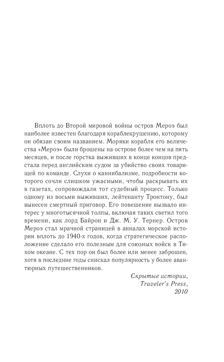 Имя острова Мероэ занимает заслуженное место как на страницах истории, так и в легендах, от которых кровь стынет в жилах. Говорят, самая большая опасность подстерегает тех, кто провел здесь больше нескольких дней. Мероэ неохотно отпускает своих гостей.