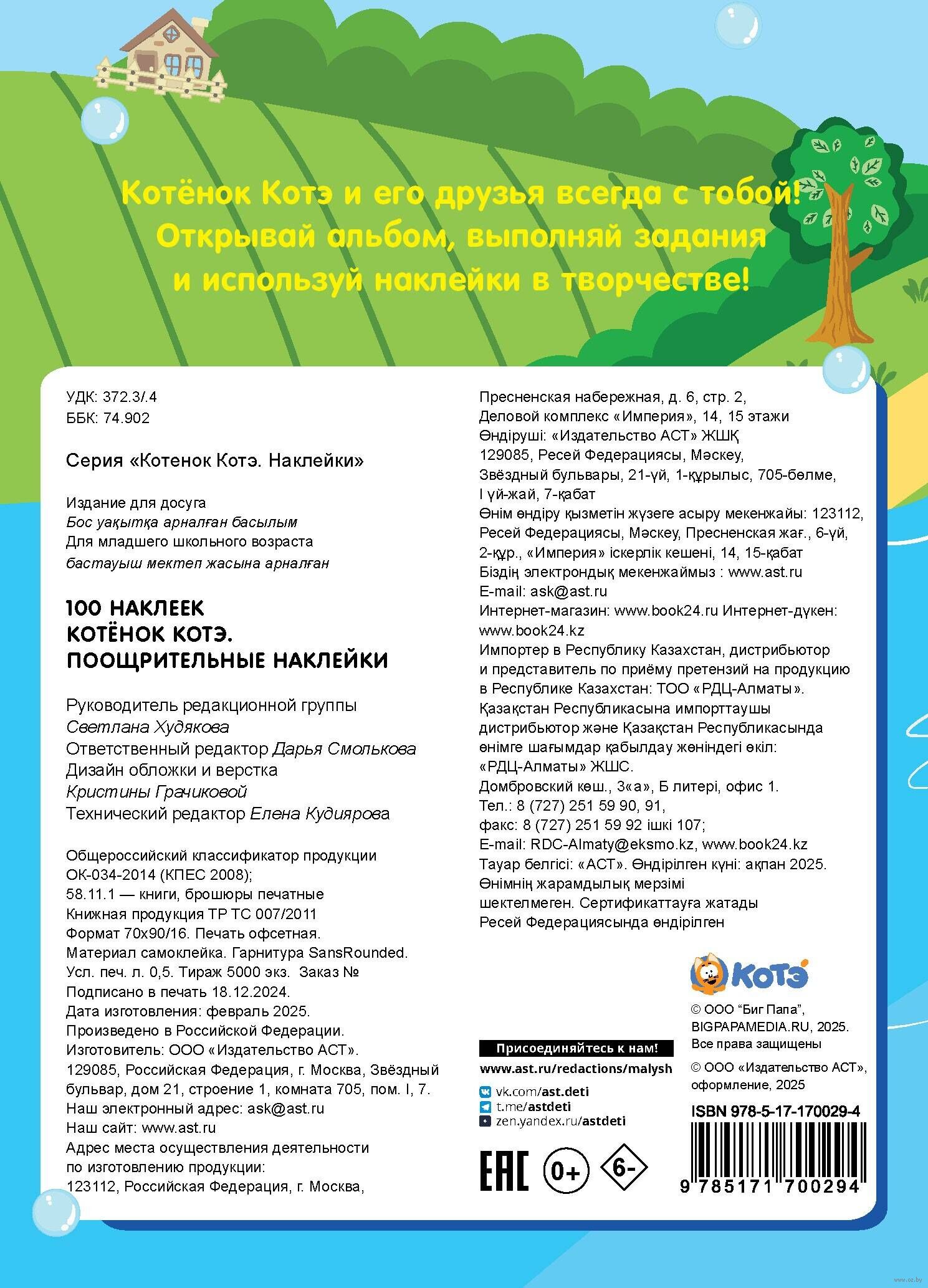 100 наклеек. Котёнок Котэ. Поощрительные наклейки