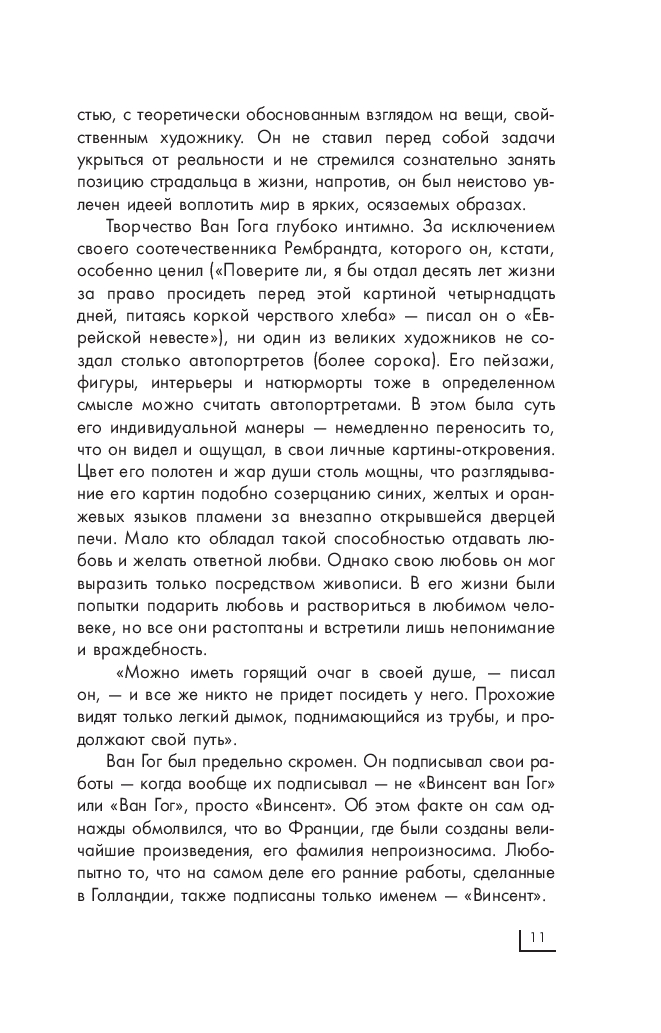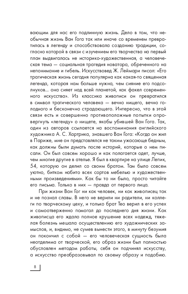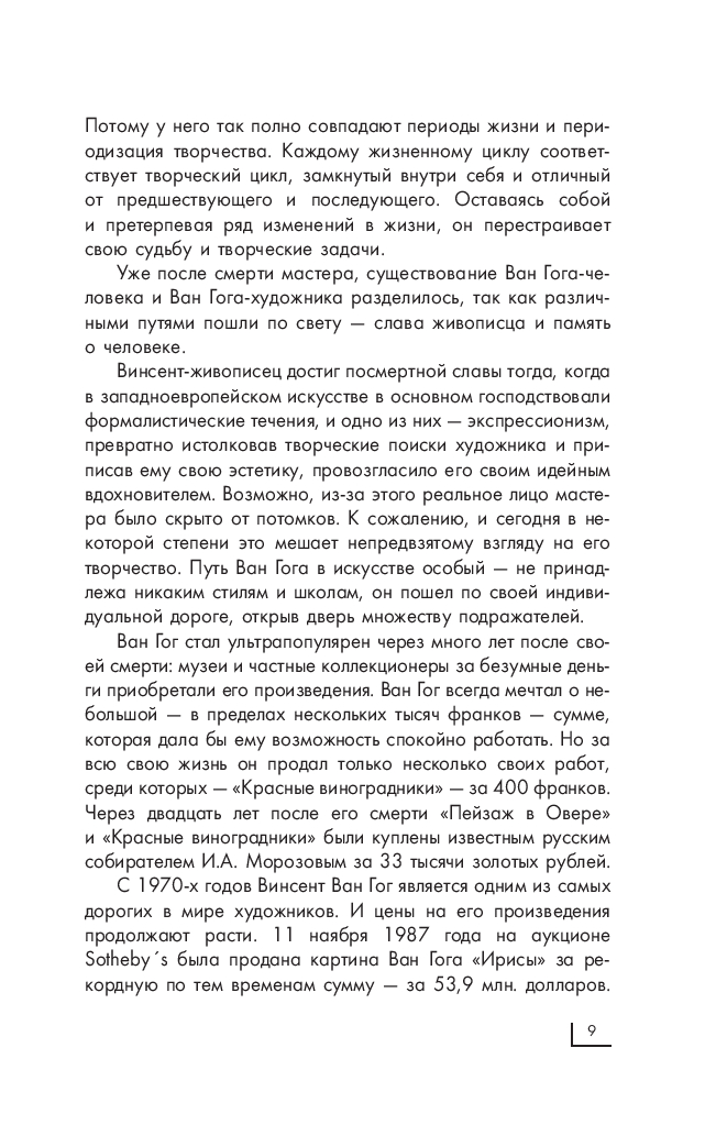 Винсент Ван Гог – личность поистине легендарная. Пожалуй, ни об одном художнике мира не было написано такого количества исследовательских работ; ни один факт из его жизни не был оставлен без внимания и много раз подробно анализировался, вызвав, тем не менее, огромное количество кривотолков. Ни одна личная жизнь была настолько всесторонне изучена, что даже послужила сюжетом для монографий и романов, а отношения с братом Тео легли в основу известного фильма. Медики до сих пор спорят о том, чем же все-таки болел Ван Гог, и как это повлияло на его творчество? Художники, представители разных течений и направлений, борются за право выбора Ван Гога своим учителем и гуру, в то время как он, самоучка, не был представителем ни одной из известных школ.