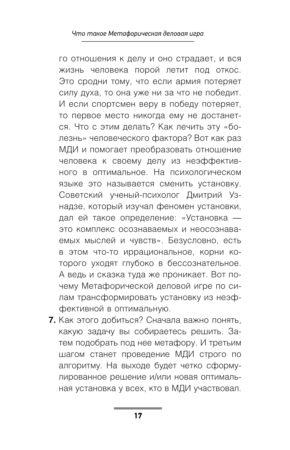 В книге исследуются инновационные подходы к обучению и развитию персонала через использование метафор и игровых техник. Автор описывает проблемы, мешающие бизнесу, и представляет их решение через игры, образы и символы. Самоанализ через игру дает понять сложные бизнес-процессы, улучшить командное взаимодействие и повысить мотивацию сотрудников.