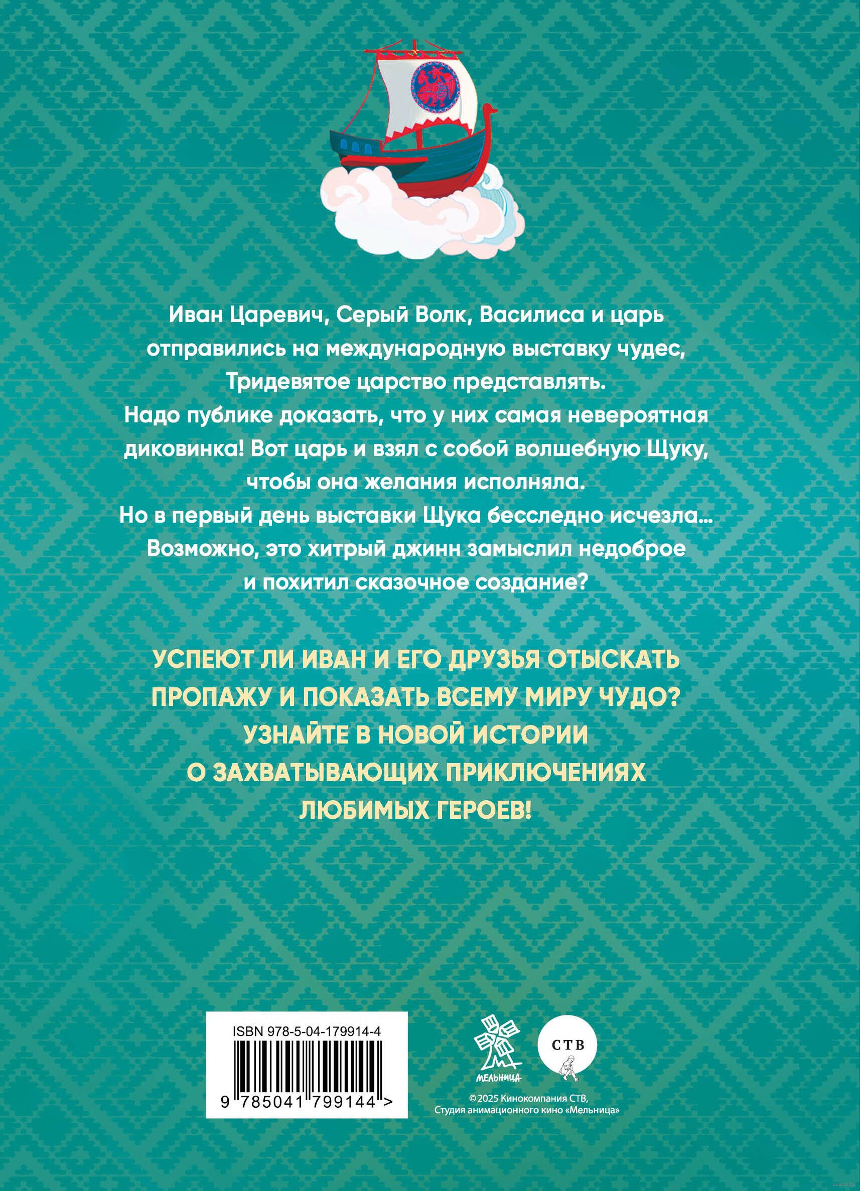 Иван Царевич, Серый Волк, Василиса и царь отправились на международную выставку чудес, Тридевятое царство представлять. Надо публике доказать, что у них самая невероятная диковинка! Вот царь и взял с собой волшебную Щуку, чтобы она желания исполняла. Но в первый день выставки Щука бесследно исчезла... Возможно, это хитрый джинн замыслил недоброе и похитил сказочное создание? Успеют ли Иван и его друзья отыскать пропажу и показать всему миру чудо? Узнайте в новой истории о захватывающих приключениях любимых героев!