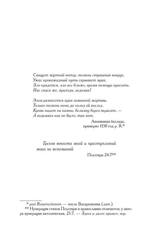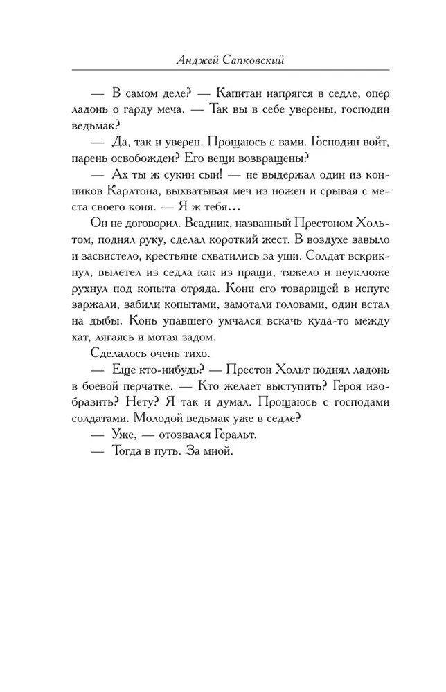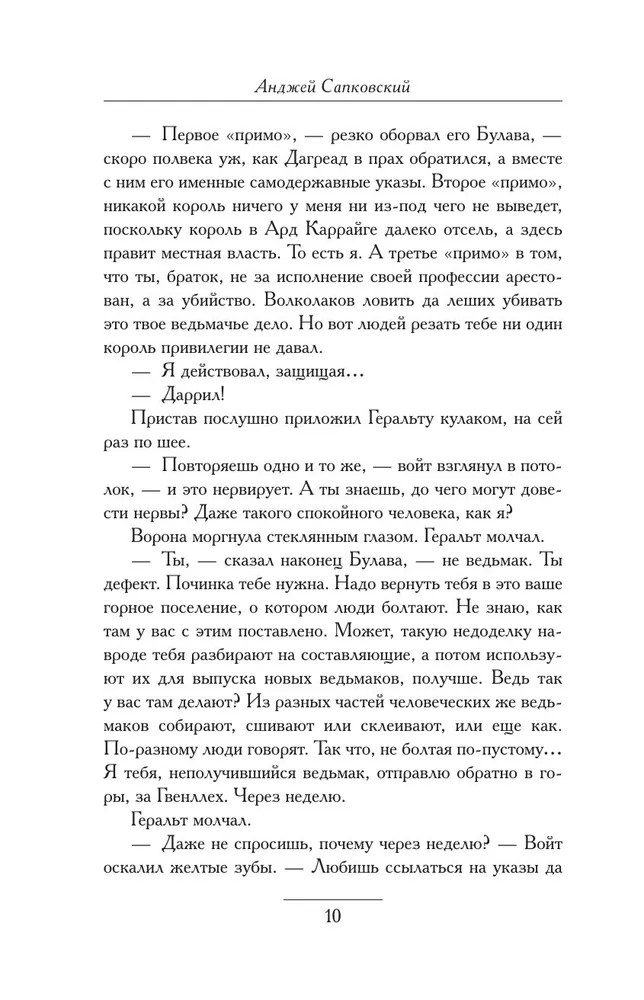 Закончились годы учебы, и Геральт покидает надежные стены крепости Каэр Морхен. Здесь, в обычном человеческом мире, экзамены ставит жизнь и пересдать их уже не получится. Малейший промах может обрушить карьеру юного ведьмака – страшные чудовища, таящиеся в сумраке лесных зарослей, кладбищ и пустырей, не так опасны, как люди, что улыбаются тебе в лицо, замышляя предательство.