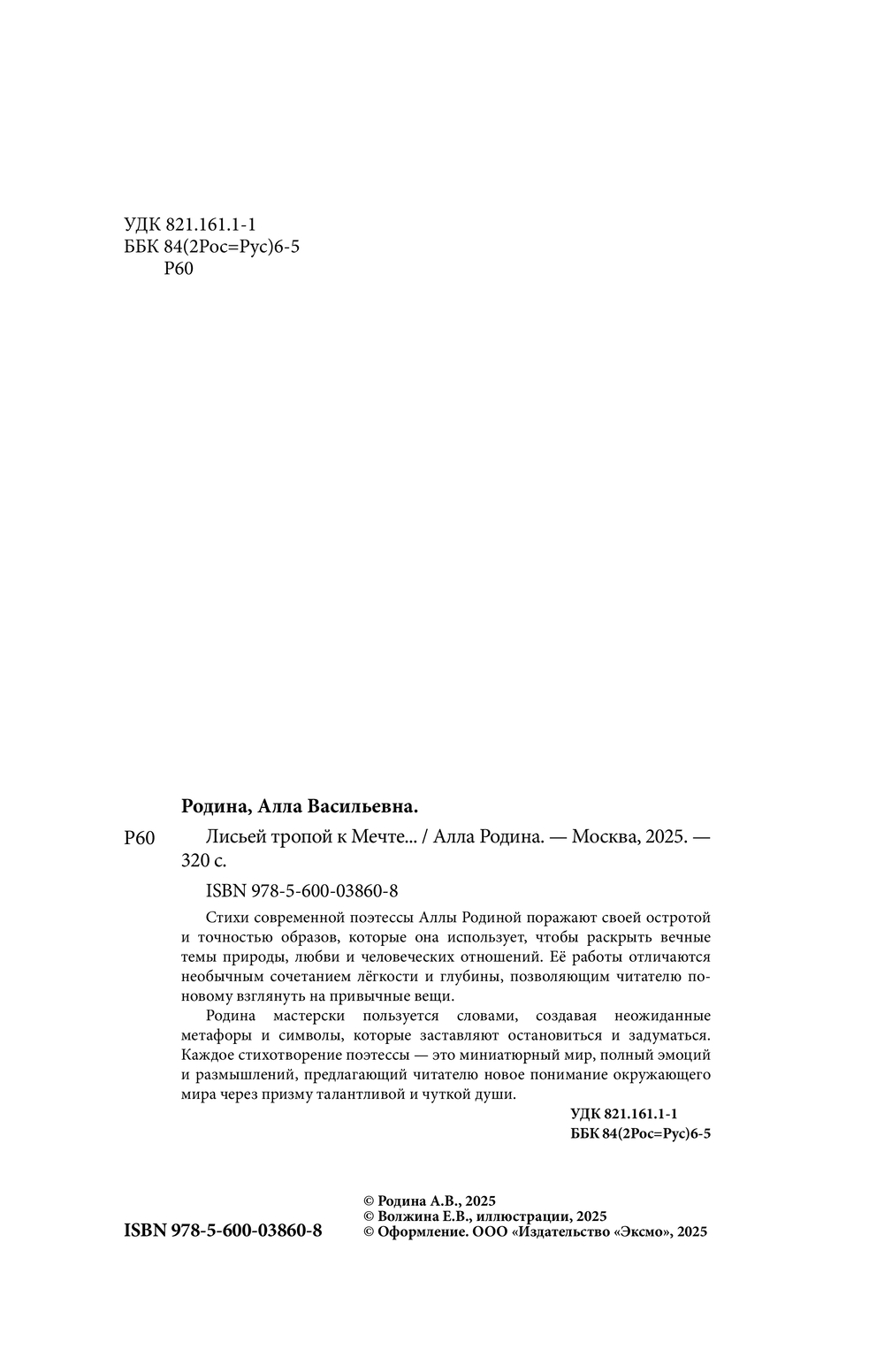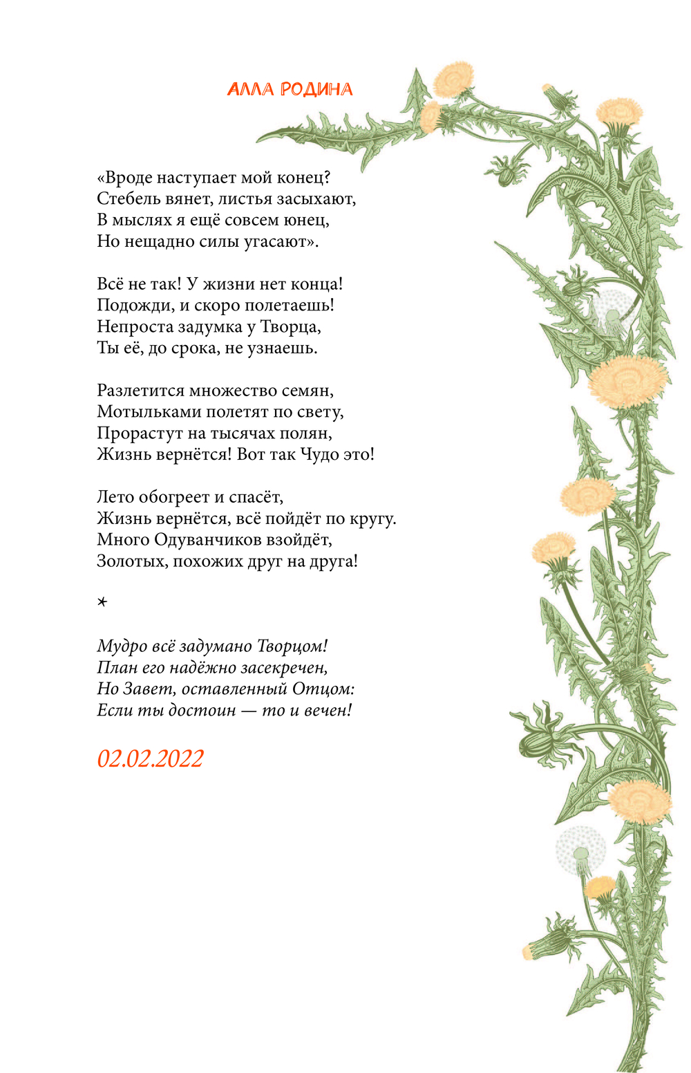 Стихи современной поэтессы Аллы Родиной поражают своей остротой и точностью образов, которые она использует, чтобы раскрыть вечные темы природы, любви и человеческих отношений. Её работы отличаются необычным сочетанием лёгкости и глубины, позволяющим читателю по-новому взглянуть на привычные вещи.