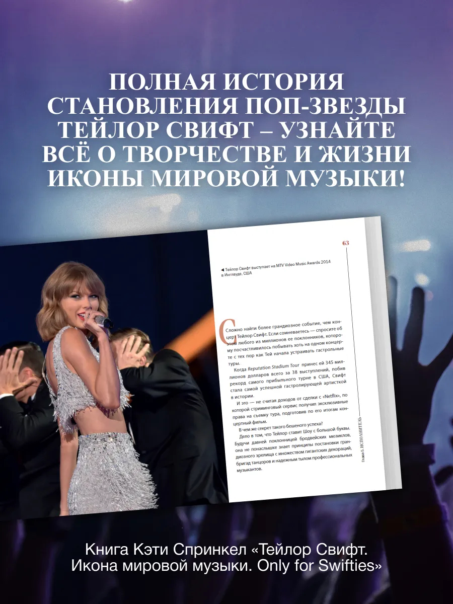 В этой книге музыкальный эксперт Кэти Спринкел рассказывает о детстве певицы и её пути к успеху, о разных этапах её творчества, о том, как она создаёт хиты, и о многом другом. Творец, новатор, лучшая подруга, законодатель мод – в каждой главе рассматривается одно из определений, которыми можно описать Тейлор. Все они складываются в единый портрет многогранной личности и блистательной певицы, которая по праву считается одной из величайших исполнительниц XXI века.
