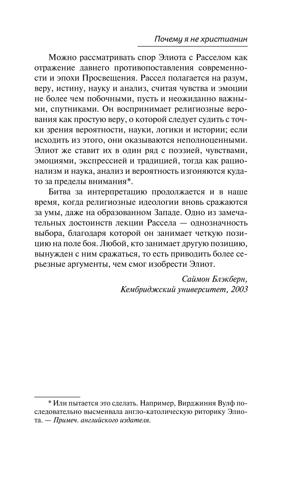 В предлагаемом сборнике собраны самые смелые его сочинения о вере, нравственности и сексуальном воспитании, которые принесли ему славу одного из величайших еретиков в сфере морали и религии. В этих лекциях и эссе он проявил те же проницательность, остроумие и красноречие, которые характерны для блестящей прозы других его работ. Благодаря этим качествам эссе, включенные в данную книгу, представляют собой, возможно, самое оригинальное и самое изящное изложение позиции свободомыслящего человека со времен Юма и Вольтера.