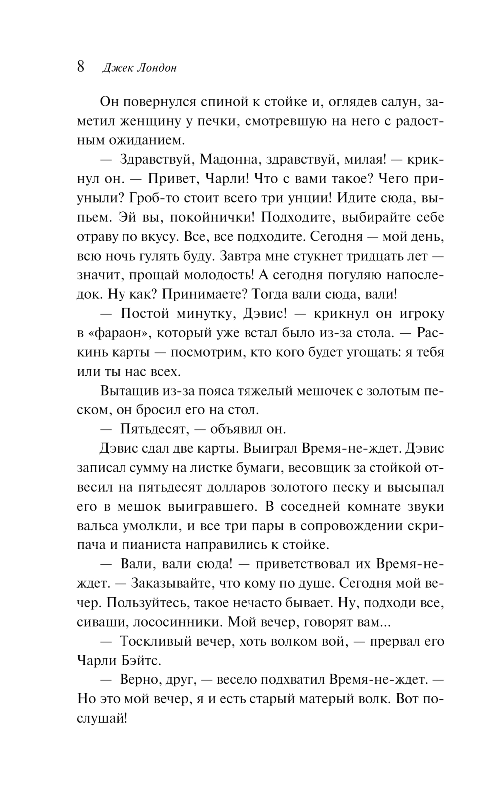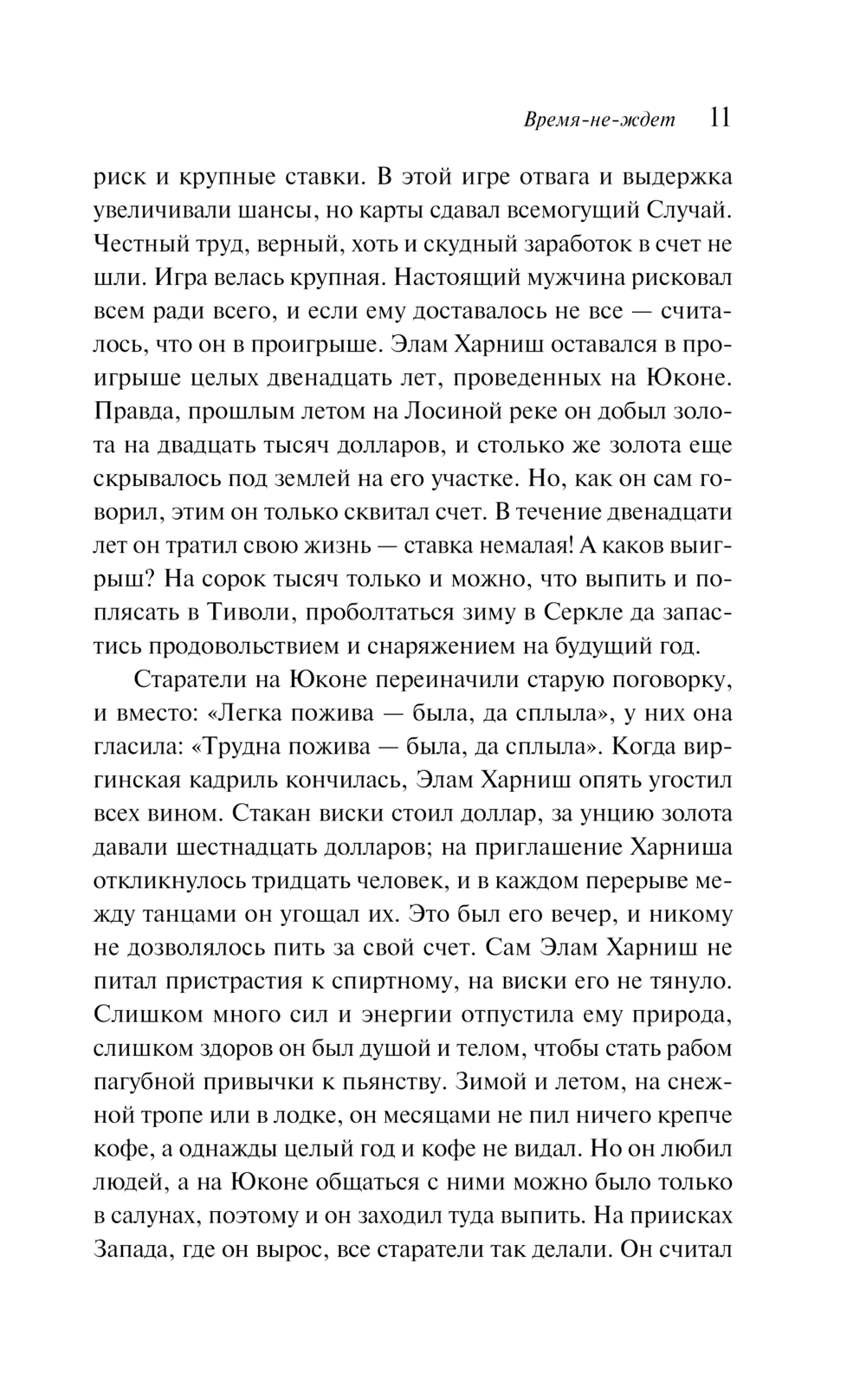 Авантюрист и золотоискатель Элам Харниш по прозвищу Время-не-ждет – по натуре настоящий игрок, и жизнь представляется ему лишь увлекательной и азартной игрой. В гонке за богатством и властью он действует расчетливо и цинично и вскоре становится миллионером. Однако встреча со стенографисткой Дид Мэйсон производит в его душе настоящий переворот.