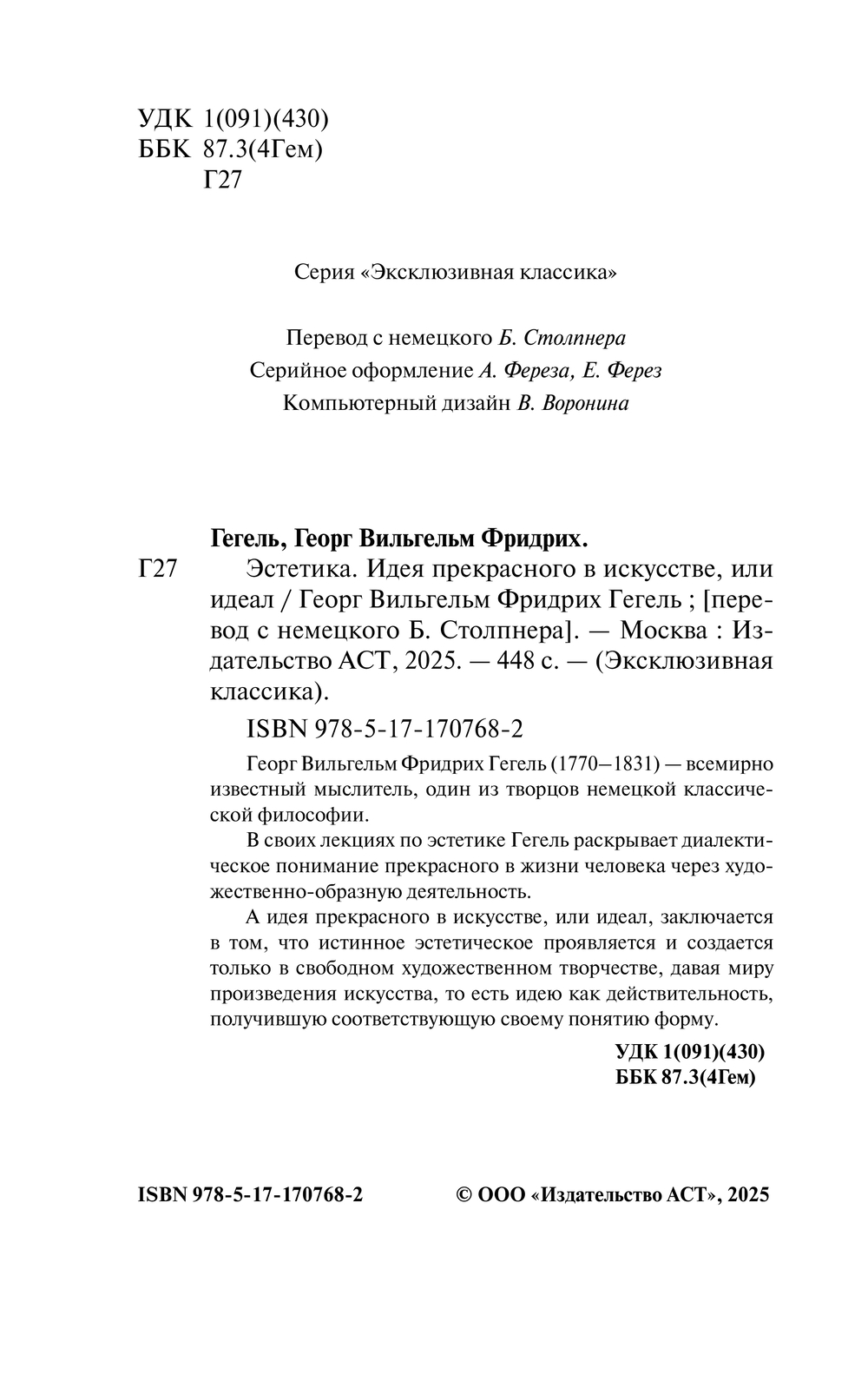Эстетика. Идея прекрасного в искусстве, или идеал