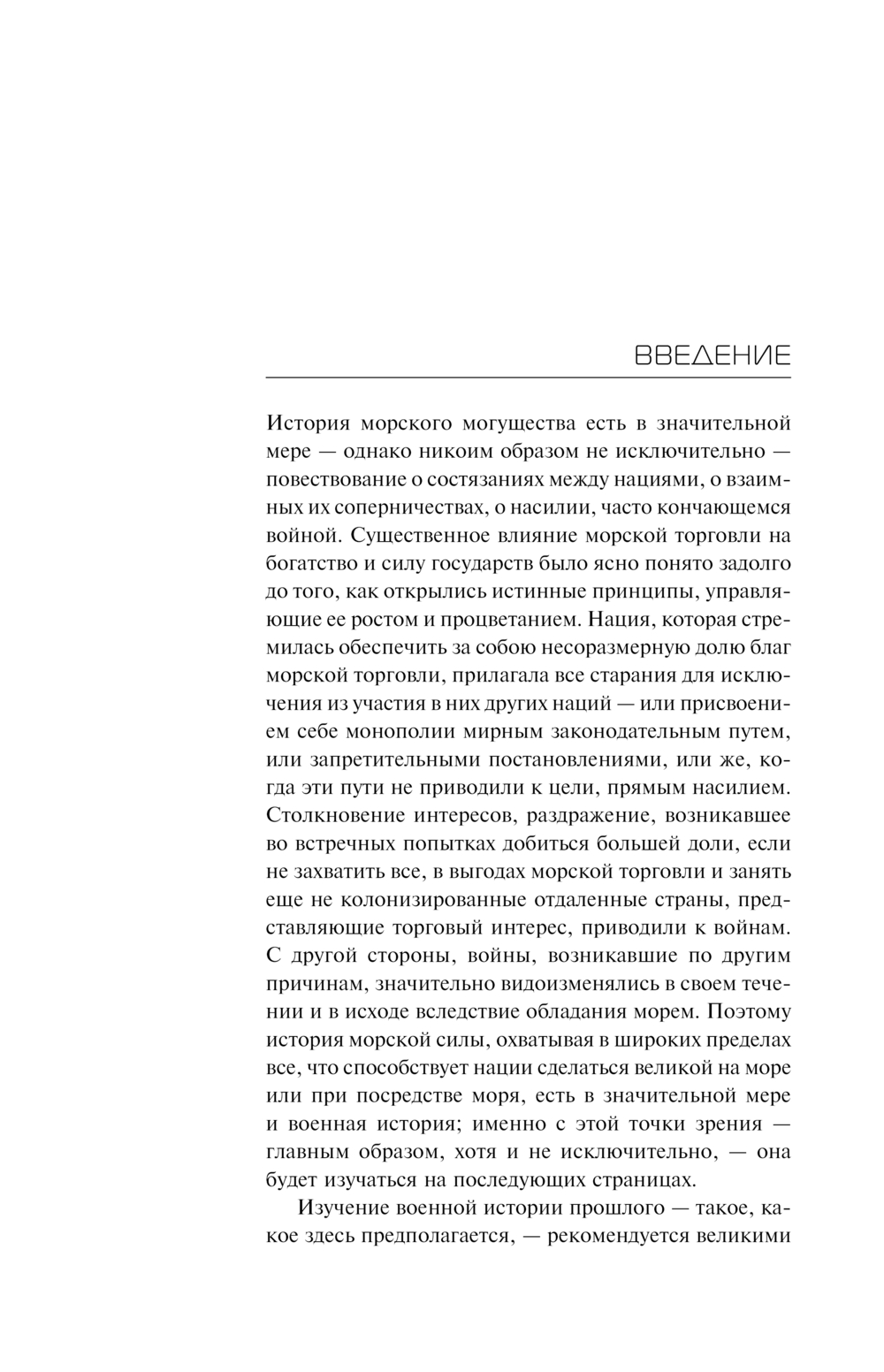 В своей книге А.Т. Мэхэн исследует влияние морской силы на ход истории Европы и Америки в период с 1660 по 1783 год, основываясь на широком фактическом материале, формулирует закономерности войны на море и обосновывает теорию "морской мощи". Согласно этой теории достижение господства на море признавалось основным законом войны и целью, обеспечивающей победу над противником и завоевание мирового господства.