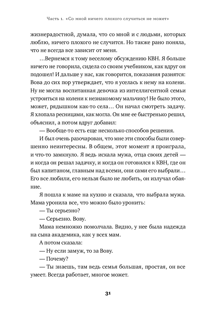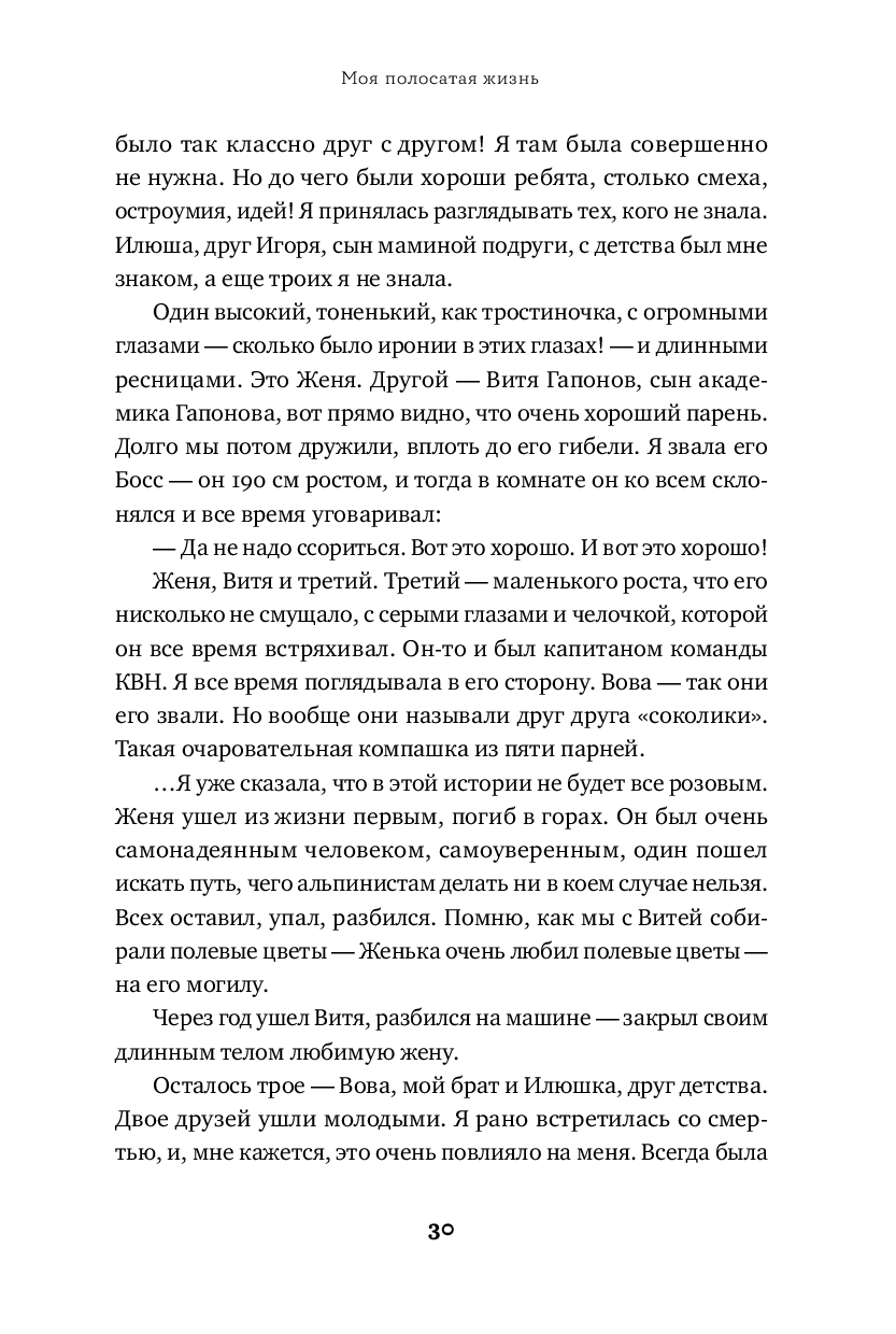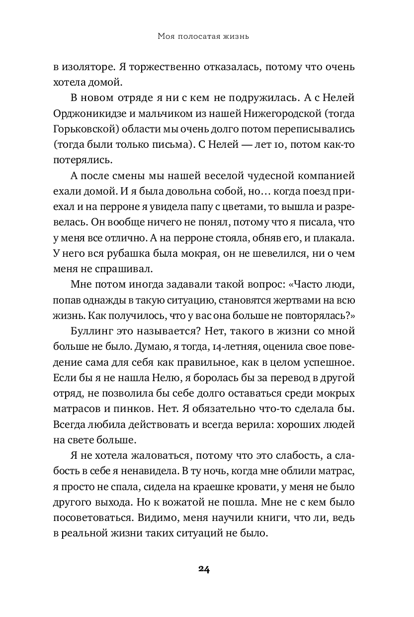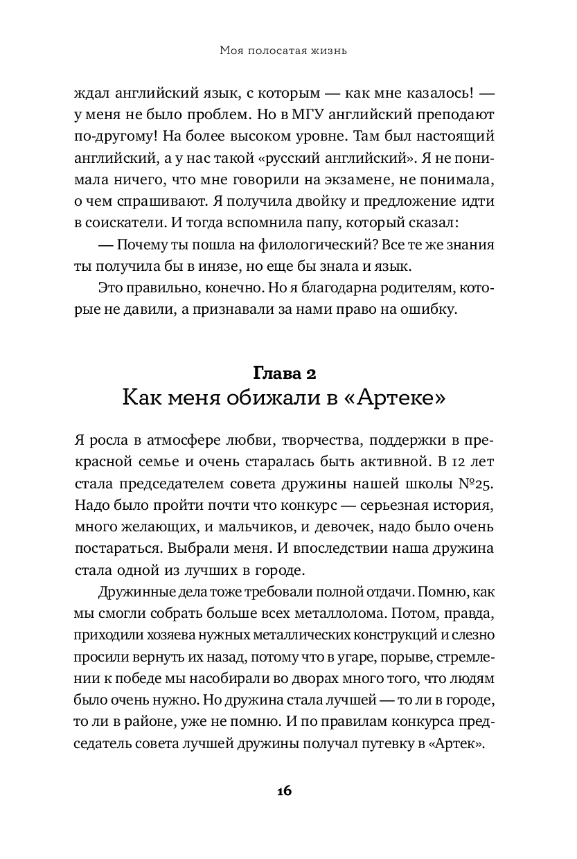 Моя жизнь – полосатая, как у всех. И в ней случалось разное. В этой книге я собрала свои истории о любимых людях, о подарках судьбы, о неудачах, с которыми трудно было справиться. Но если подумать, оказывается, что даже из неудач можно сделать полезные выводы и идти дальше. Я расскажу истории о себе и буду надеяться, что каждому из вас тоже найдется что вспомнить: про радостное и грустное, про надежду и веру, про сомнения и переживания, про самых близких и случайных знакомых. Я уверена, что в нашей жизни много света, надо просто разглядеть его. Надеюсь, что моя книга вам в этом поможет.