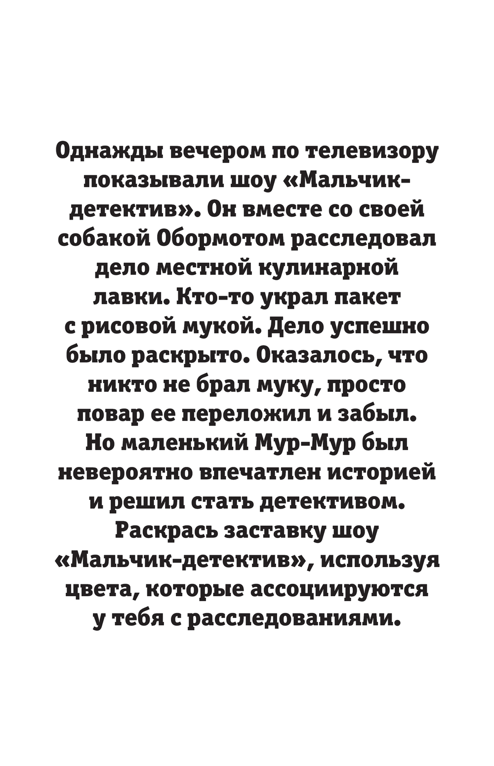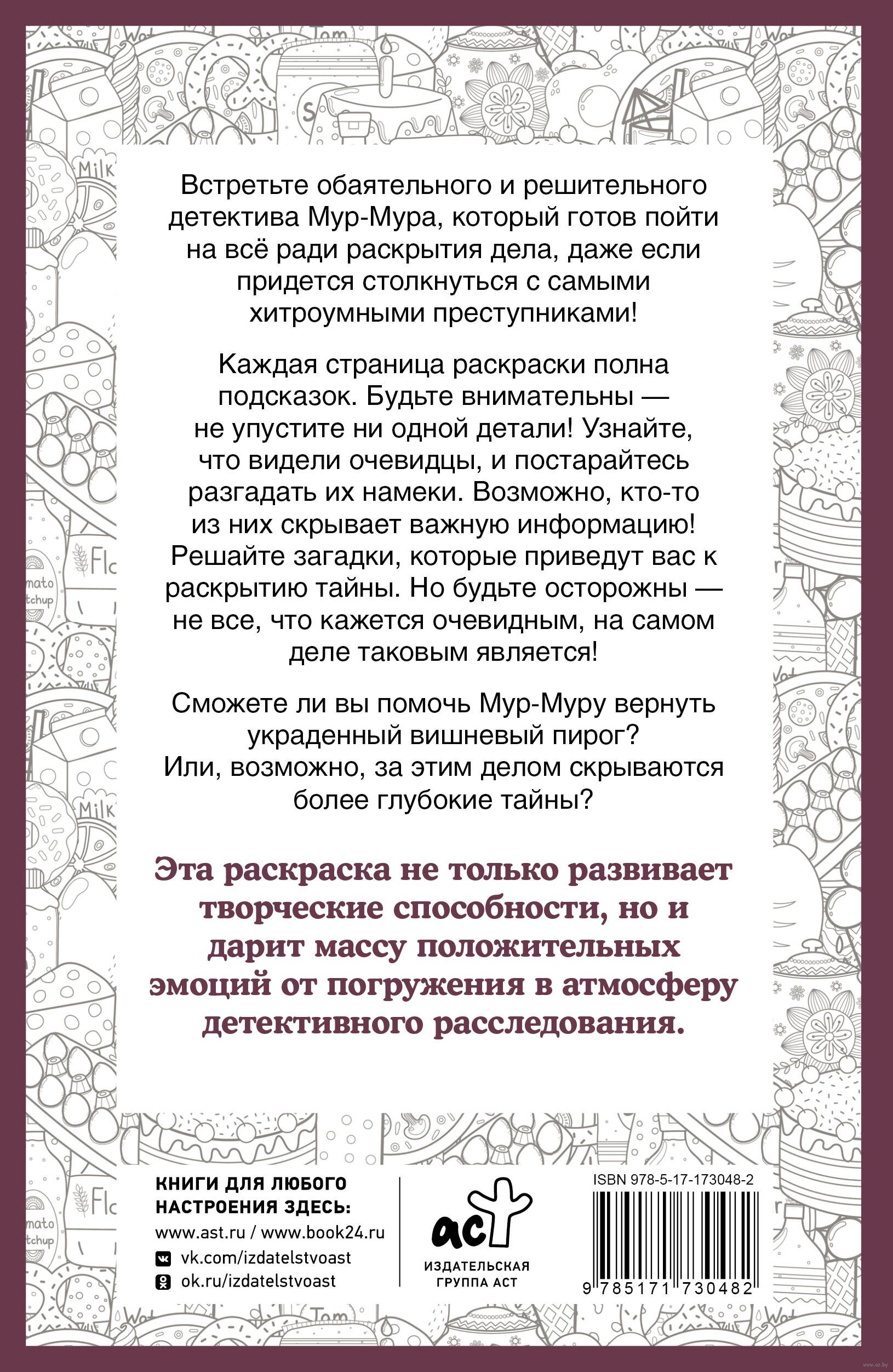 Сможете ли вы помочь Мур-Муру вернуть украденный вишнёвый пирог? Или, возможно, за этим делом скрываются более глубокие тайны? Эта раскраска не только развивает творческие способности, но и дарит массу положительных эмоций от погружения в атмосферу детективного расследования.