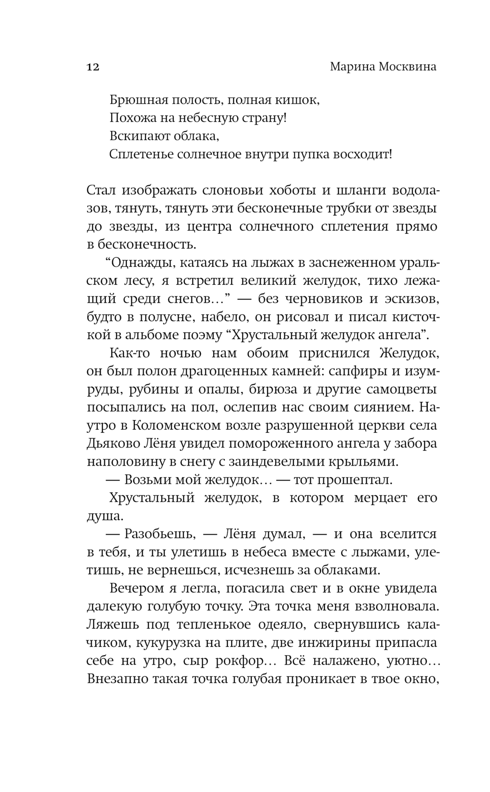"Хрустальный желудок ангела" – новая книга повестей Марины Москвиной.