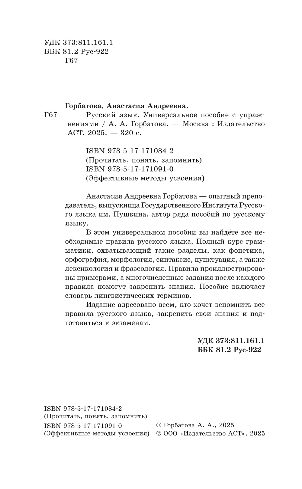 В этом универсальном пособии вы найдёте все необходимые правила русского языка. Полный курс грамматики, охватывающий такие разделы, как фонетика, орфография, морфология, синтаксис, пунктуация, а также лексикология и фразеология. Правила проиллюстрированы примерами, а многочисленные задания после каждого правила помогут закрепить знания. Пособие включает словарь лингвистических терминов.