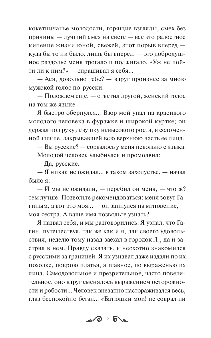Три истории о первой любви, которую легко обрести – и так же легко потерять. Невероятно лиричные и отчасти автобиографичные, эти истории подарили нам знаменитый образ "тургеневской девушки" – жертвенной, готовой совершить подвиг во имя собственного счастья, открытой для большого и сильного чувства. В сборник вошли повести "Ася", "Первая любовь" и "Вешние воды", написанные Тургеневым в период с конца 1850-х по начало 1870-х годов.